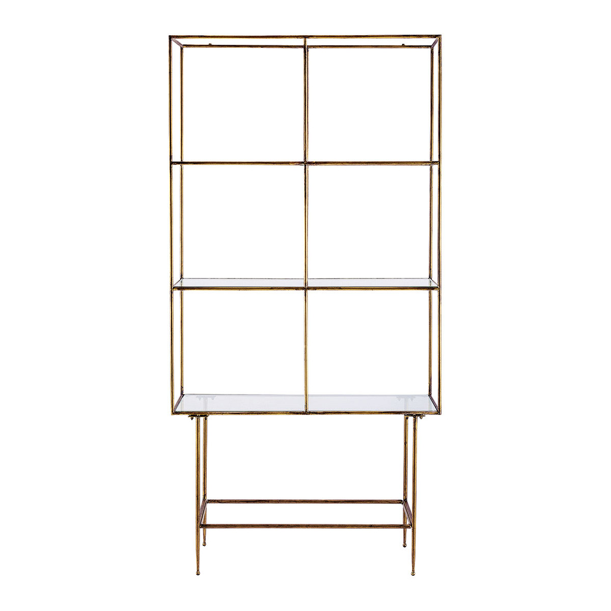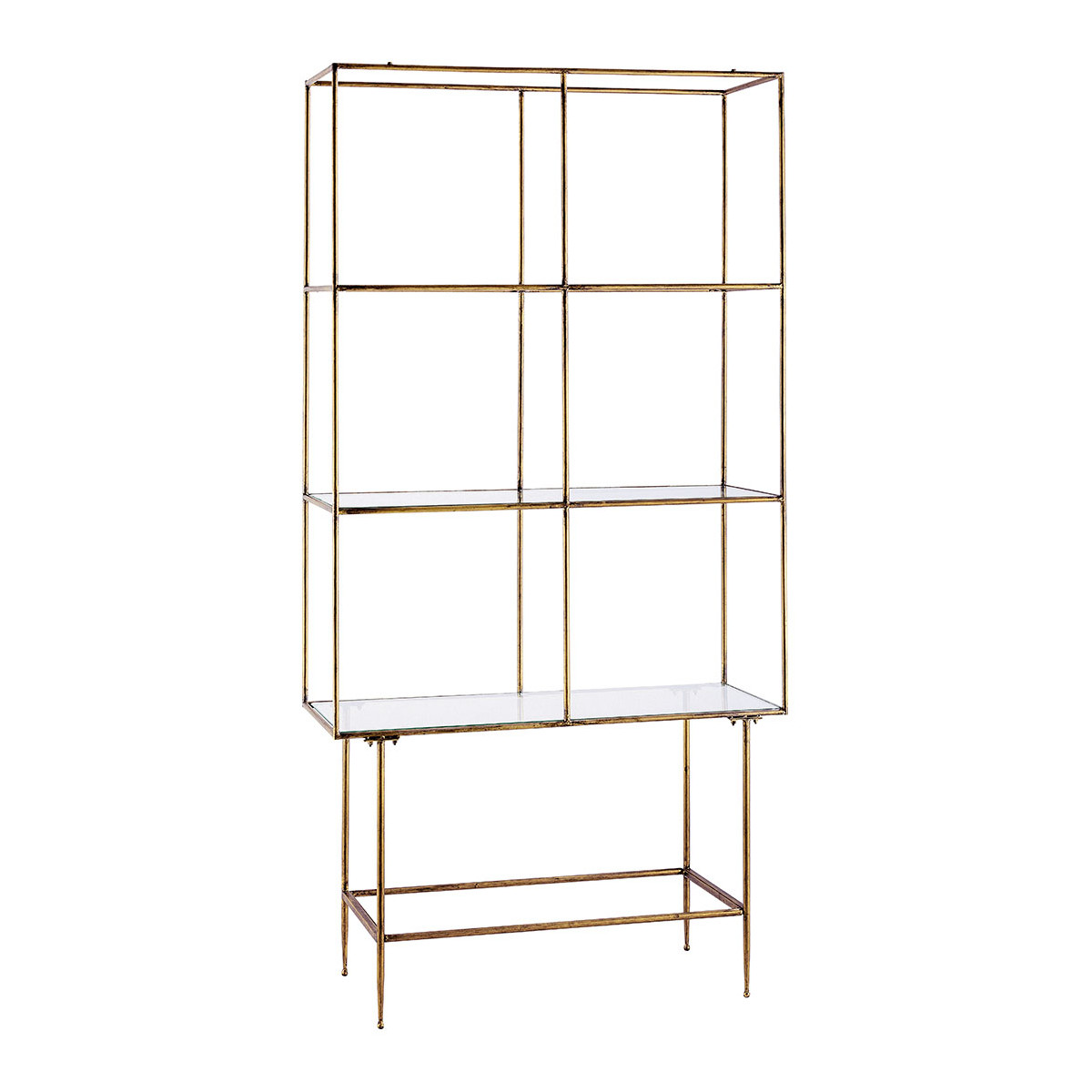 ANATOLE Bookcase in Metal with Golden Brass Finish and Glass Shelves