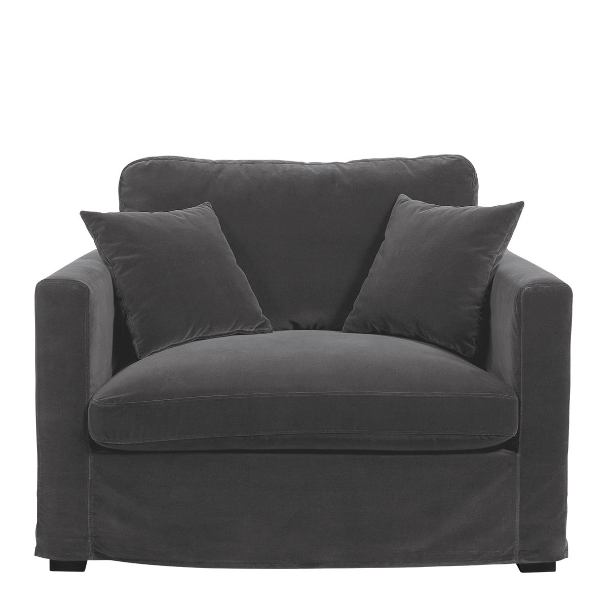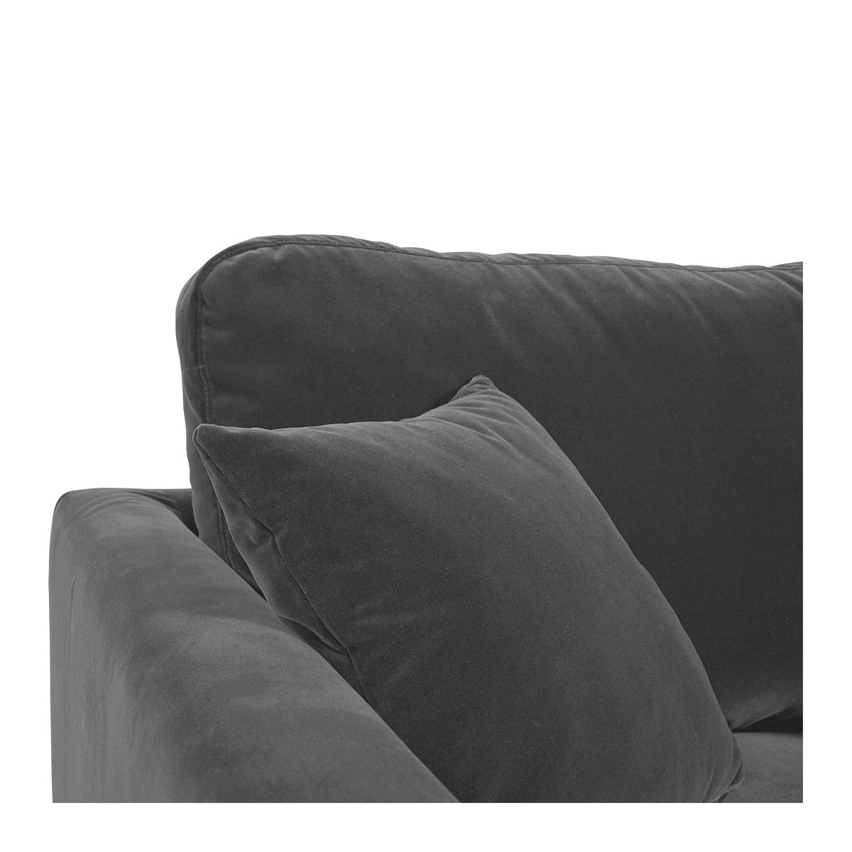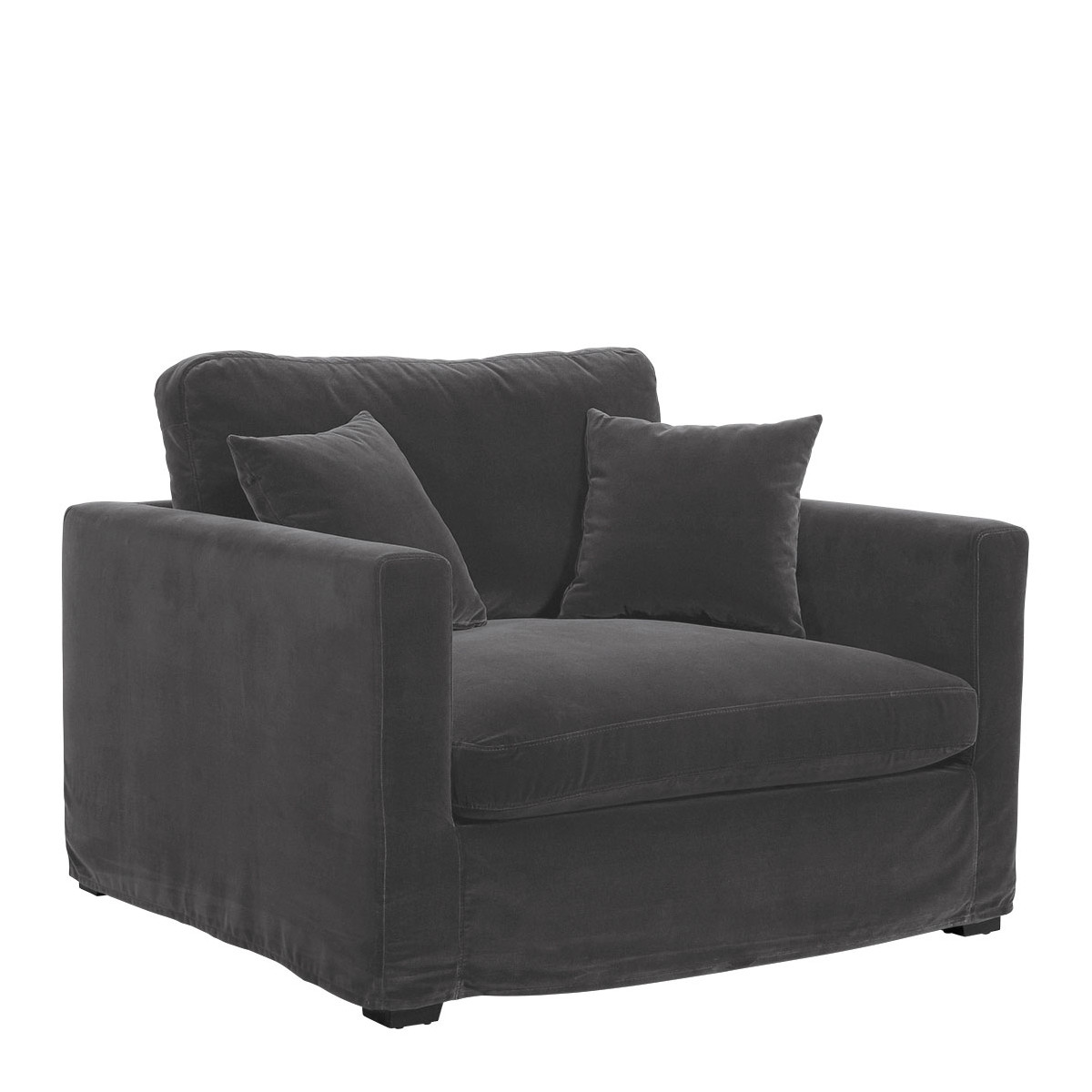 Comfort and elegance come together in your living room with the ANGIE armchair in dark gray cotton velvet. Its soft upholstery, generous seating, 2 plush cushions and large armrests make it one of the most comfortable seats. Its deep color will instantly create a warm atmosphere in your living space. Its structure and solid beech feet ensure robustness and stability.
