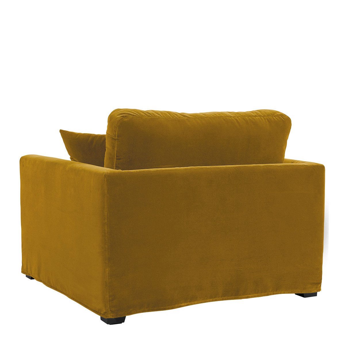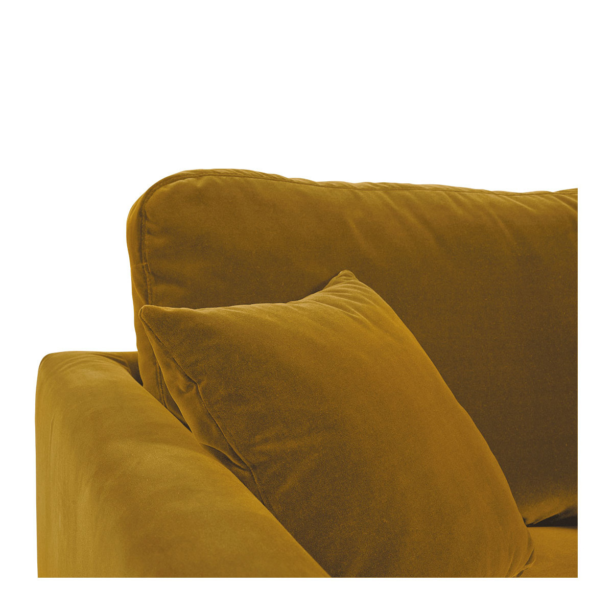 Comfort and elegance come together in your living room with the ANGIE armchair in saffron velvet. Its soft upholstery, generous seating, 2 plush cushions, and wide armrests make it one of the most comfortable seating options. Its deep color will instantly create a warm ambiance in your living space. Its solid beech structure and legs ensure robustness and stability.