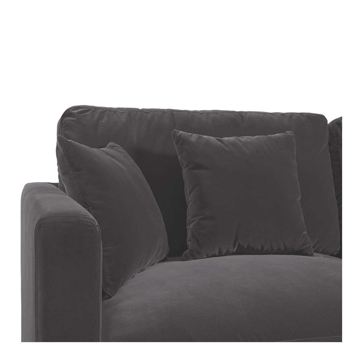 Comfort and elegance come into your living room with the ANGIE chaise sofa in dark gray cotton velvet. Its soft upholstery, generous seating, 5 plush cushions and large armrests make it one of the most comfortable seats you won't want to leave... Its deep color will instantly create a warm atmosphere in your living space. Its structure and solid beech legs ensure robustness and stability. This centerpiece of the living room will quickly become the stage for unforgettable moments, with family or friends.