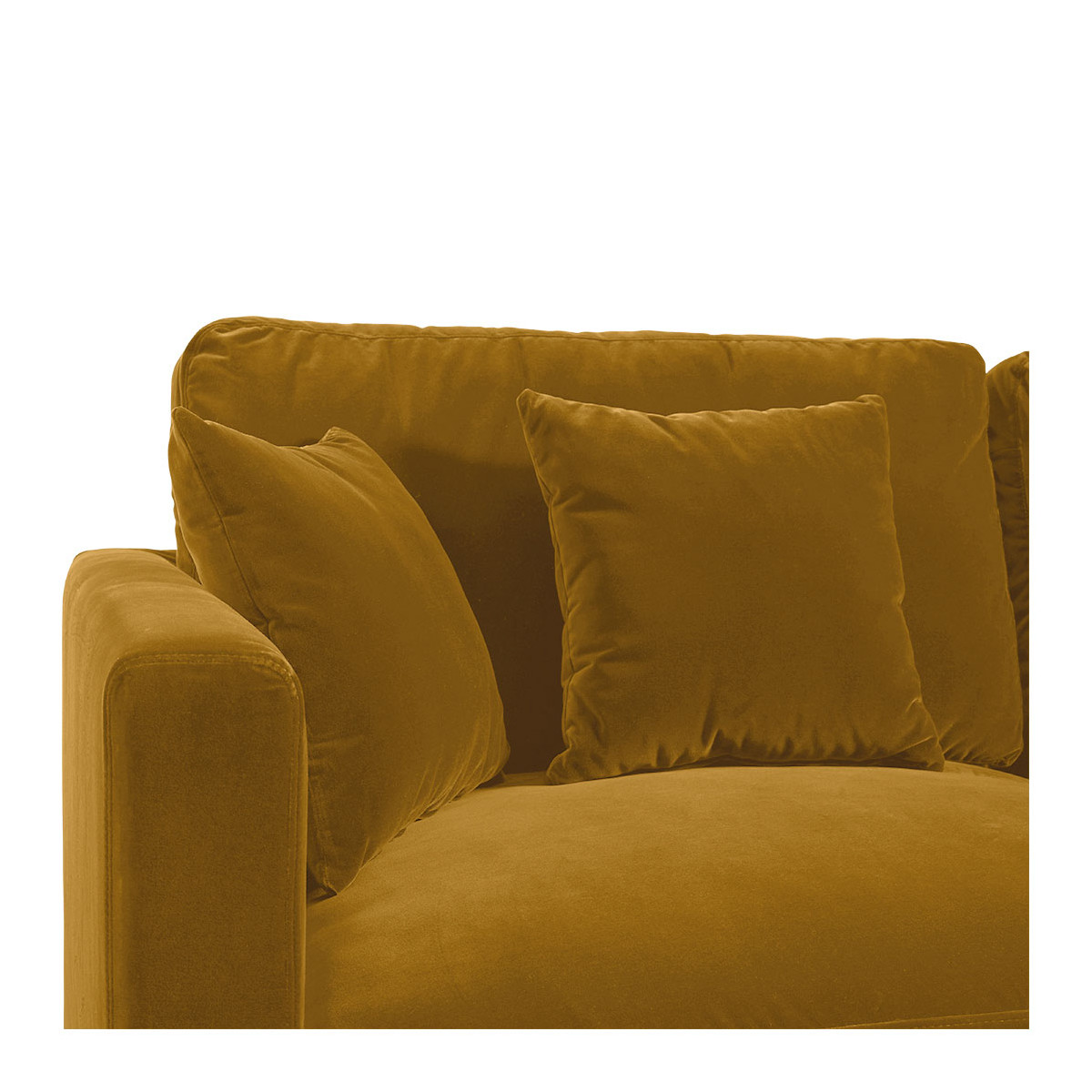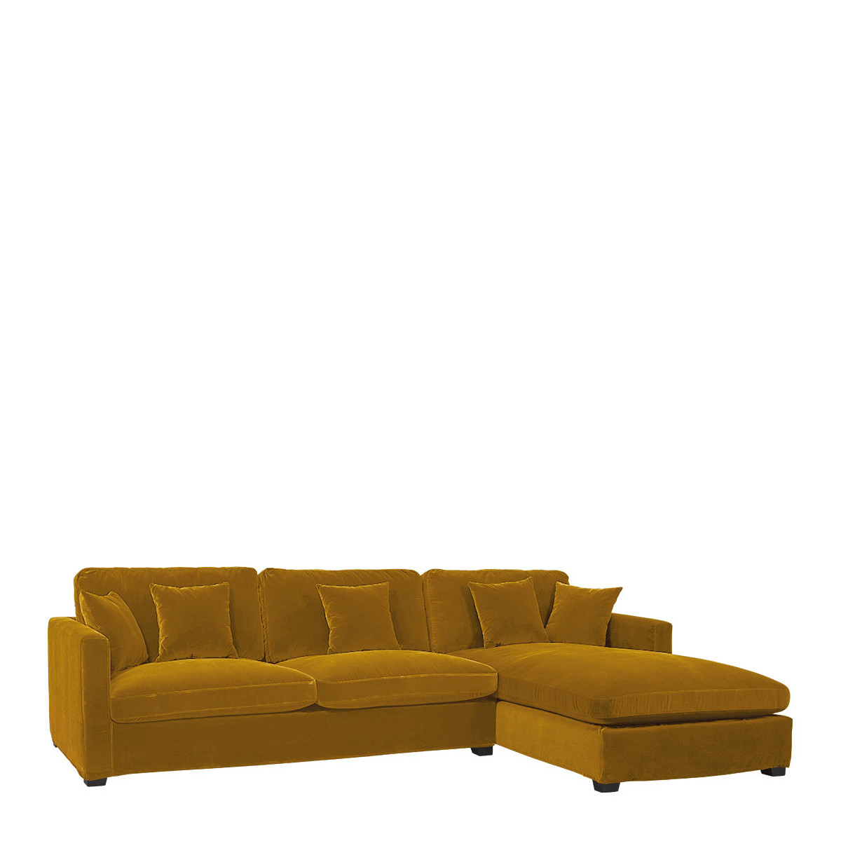 Comfort and elegance come into your living room with the ANGIE chaise sofa in saffron velvet. Its soft upholstery, generous seating, 5 plush cushions and large armrests make it one of the most comfortable seats you won't want to leave... Its deep color will instantly create a warm atmosphere in your living space. Its structure and solid beech legs ensure robustness and stability. This centerpiece of the living room will quickly become the stage for unforgettable moments, with family or friends.