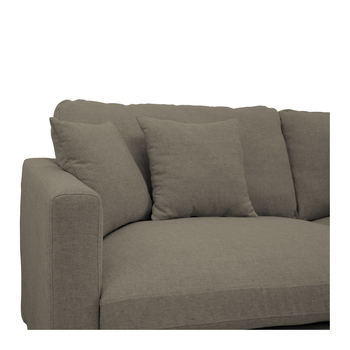 Comfort and elegance invite themselves into your living room with the ANGIE sofa in taupe linen. Its soft upholstery, generous seating, 4 plush cushions and large armrests make it one of the most comfortable seats you'll find hard to leave. Its deep color will instantly create a warm and cozy atmosphere in your living space. Its structure and solid beech legs also ensure robustness and stability. This centerpiece of your living room will quickly become the stage for unforgettable moments, with family or friends.
