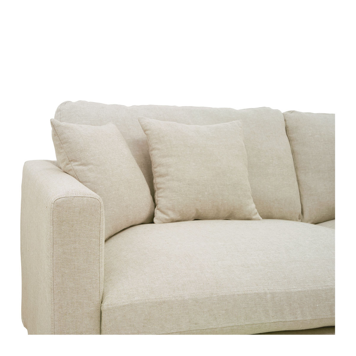 Comfort and elegance invite themselves into your living room with the ANGIE sofa in ecru linen. Its soft upholstery, generous seating, 4 plush cushions and large armrests make it one of the most comfortable seats you'll find hard to leave. Its bright color will instantly create a soft and cozy atmosphere in your living space. Its structure and solid beech feet also ensure robustness and stability. This centerpiece of your living room will quickly become the stage for unforgettable moments, with family or friends.