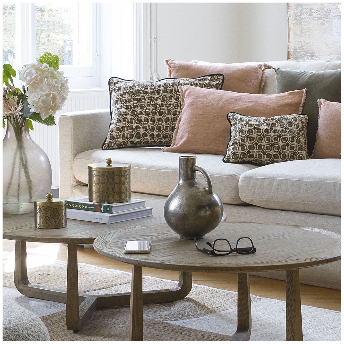 Opt for a natural decor by combining this sofa with a wooden coffee table, a jute rug and an elegant generously sized pendant light to create a warm and friendly atmosphere.