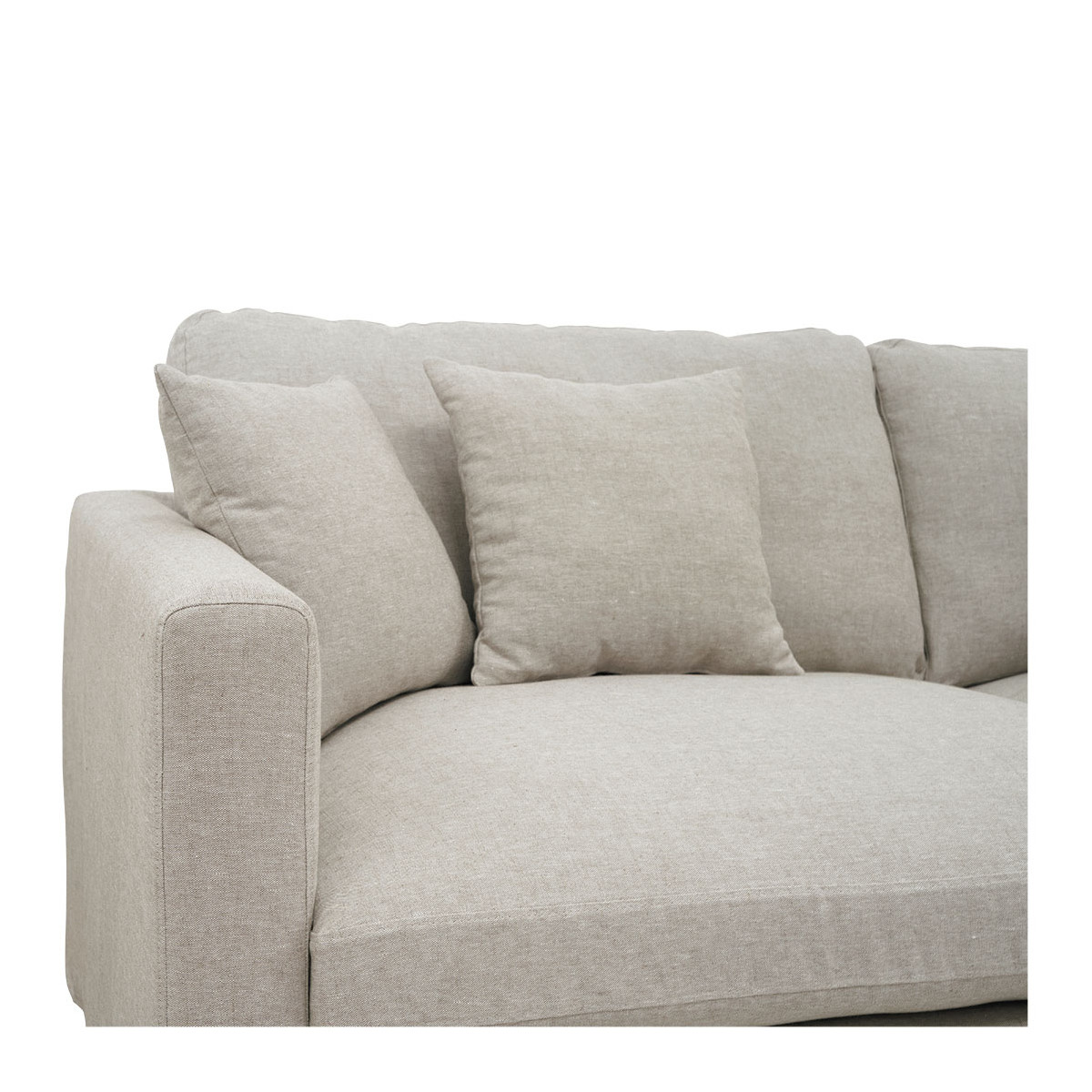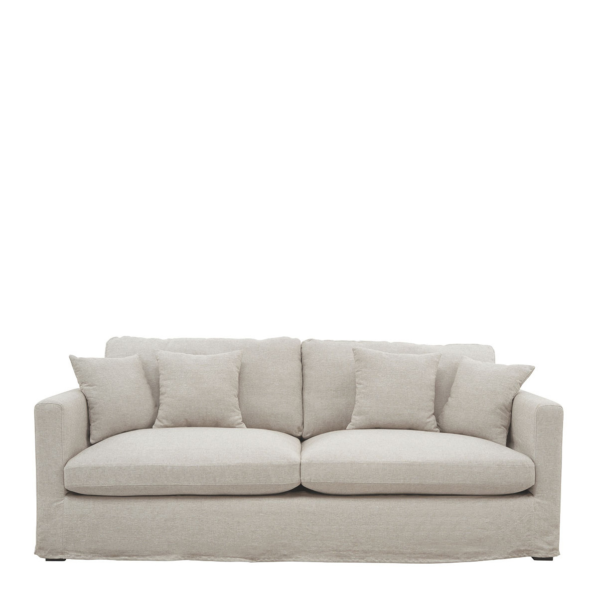 Comfort and elegance invite themselves into your living room with the ANGIE sofa in natural linen. Its soft upholstery, generous seating, 4 plush cushions and large armrests make it one of the most comfortable seats you'll find hard to leave. Its bright color will instantly create a soft and cozy atmosphere in your living space. Its structure and solid beech feet also ensure robustness and stability. This centerpiece of your living room will quickly become the stage for unforgettable moments, with family or friends.