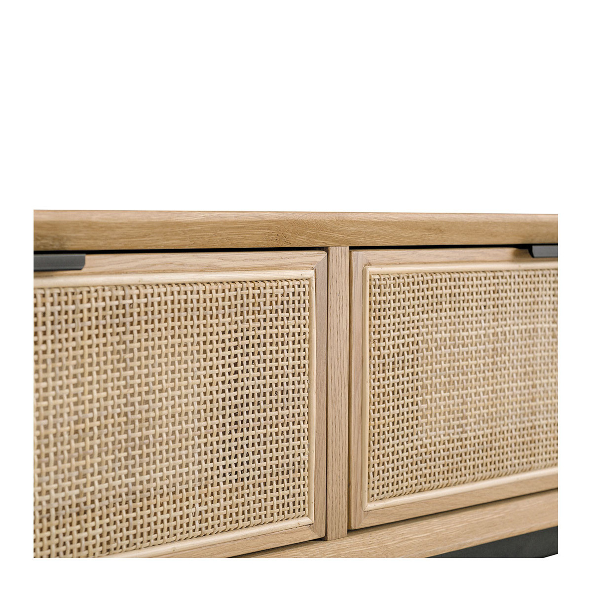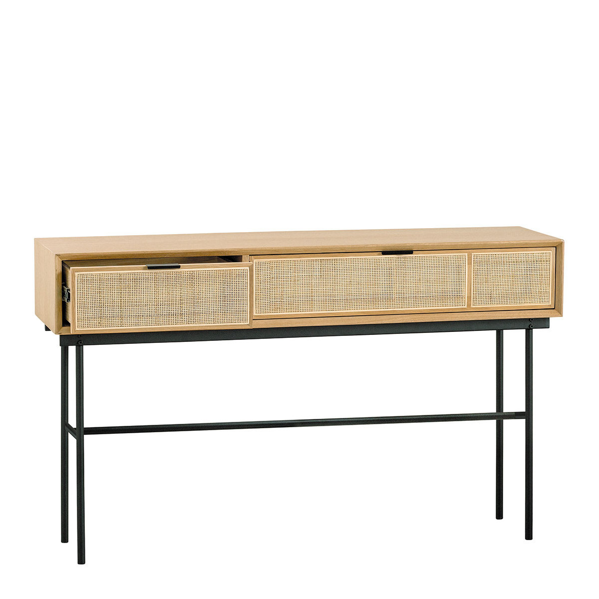 The AUGUSTIN console combines tradition and modernity. With its rattan fiber caning weave, it revisits a timeless classic. Fall for its bold patchwork effect, inspired by the creations of the famous artist Mondrian. Its beveled edges and elegant metal legs bring a contemporary touch, making this piece of furniture a centerpiece of your interior decoration.