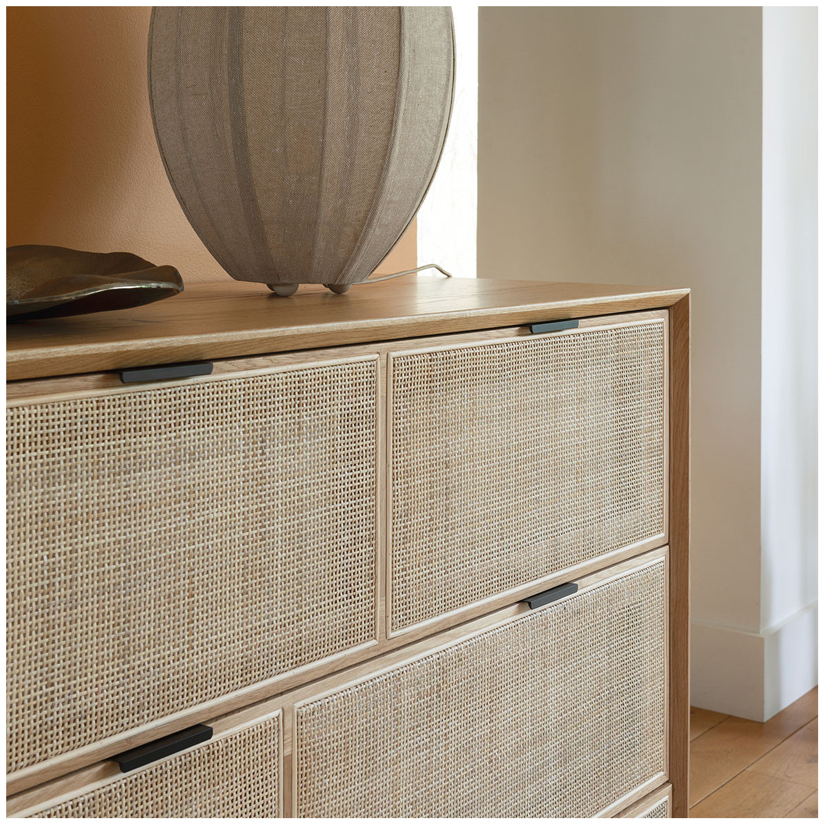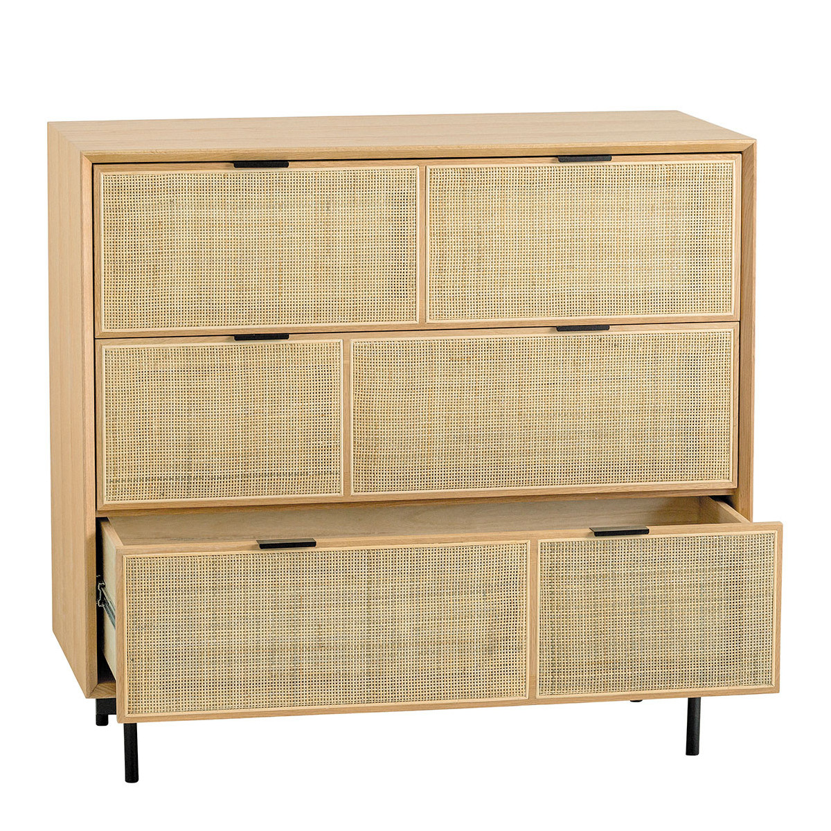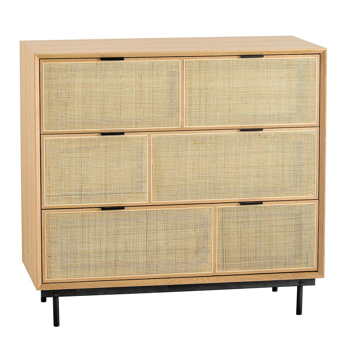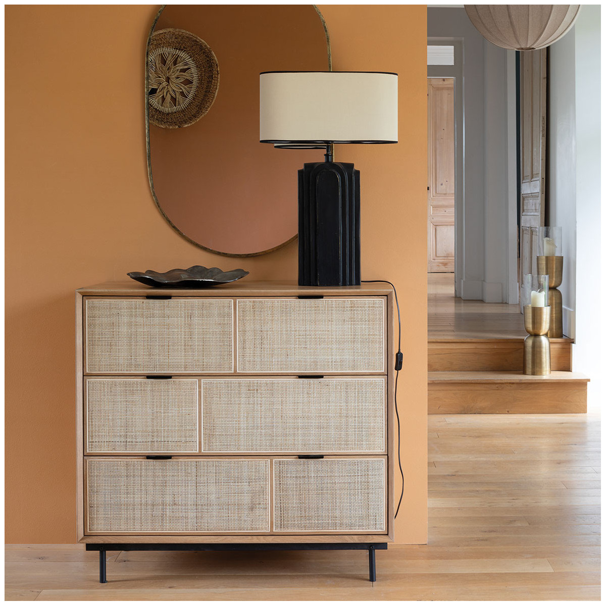 The AUGUSTIN dresser combines tradition and modernity. With its rattan fiber caning weave, it revisits a timeless classic. Fall for its bold patchwork effect, inspired by the creations of the famous artist Mondrian. Its beveled edges and elegant metal legs bring a contemporary touch, making this piece of furniture a centerpiece of your interior decoration. Its excellent storage capacity is ideal for a well-organized living room or bedroom.