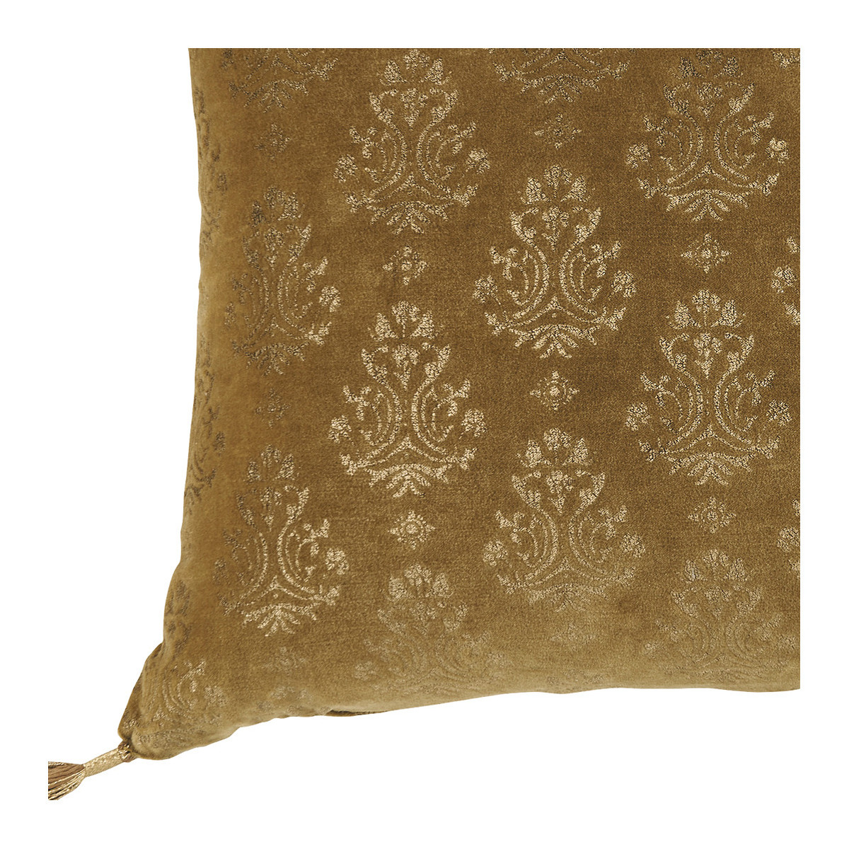 Bring delicacy and refinement to the decoration of your bedroom or living room with the AURORE bronze cushion cover. Its elegant cotton velvet fabric and subtle golden patterns will add a sophisticated touch to your interior. You can easily pair it with other patterned cushions or solid pieces.