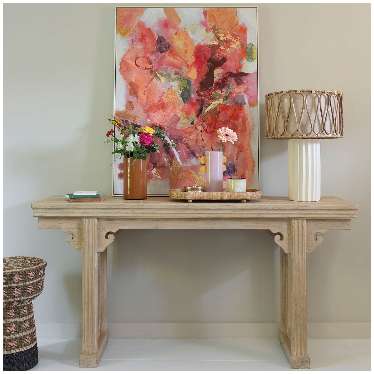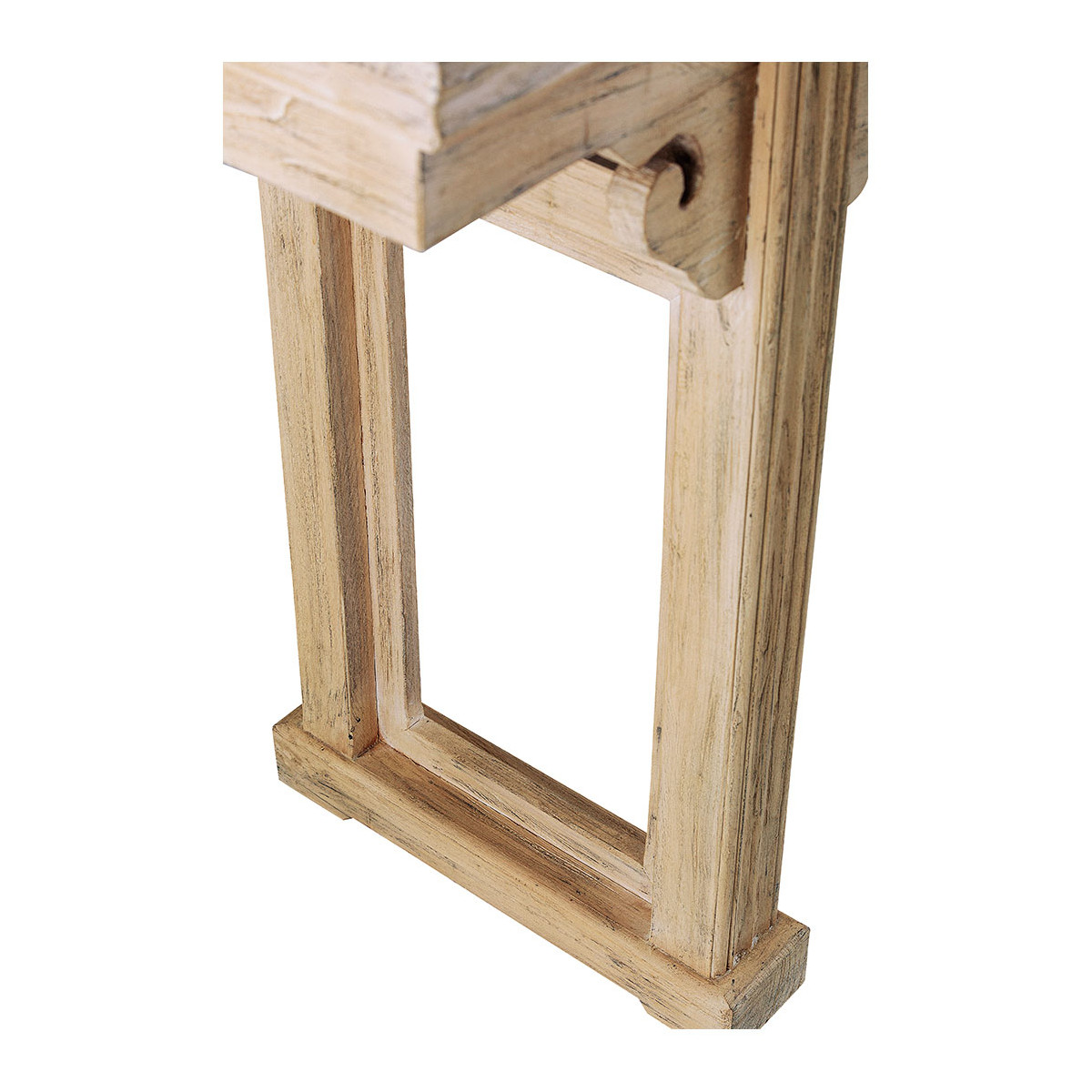 Combining refined design and raw materials, the BAO console in natural recycled elm seduces with its authentic charm and minimalist silhouette. Its solid wood with visible grain gives this piece a sober elegance, inspired by Japanese aesthetics. With its airy lines and robust structure, it integrates equally well in an entryway, living room, or dining room, bringing a warm and natural touch to your decor.