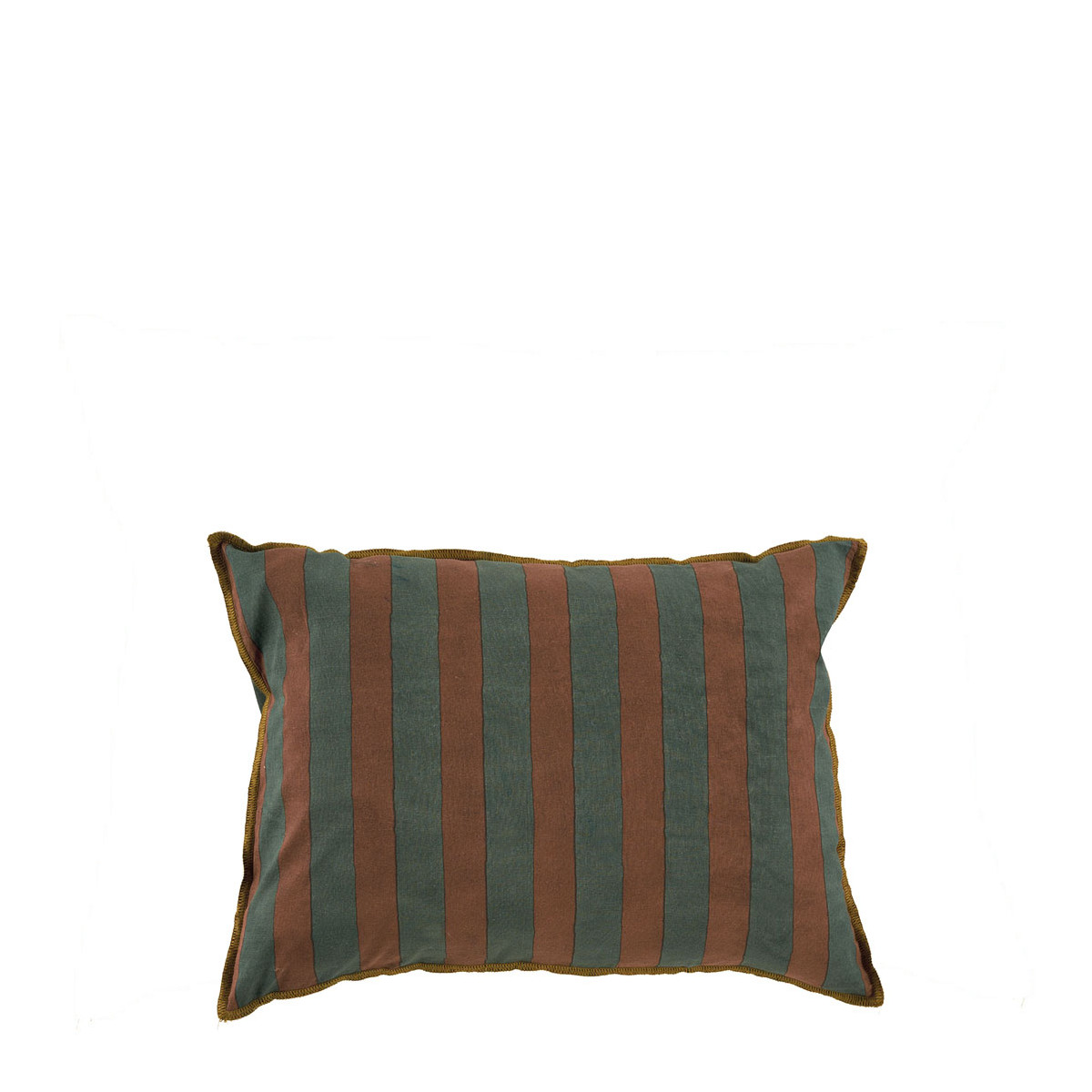 Fall for this BAYADÈRE cushion cover in cotton with its timeless pattern, printed with a wooden block using artisanal methods. The combination of petrol blue and terracotta tones offers a harmonious and elegant duo that will easily match all decoration styles. These two current colors will brighten up your spaces!