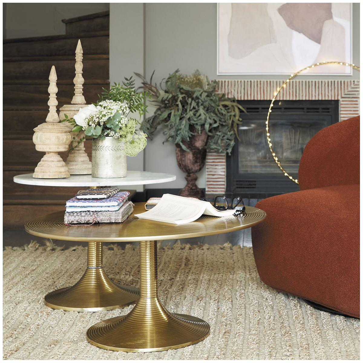 Your living room takes on elegance with the CHARLOTTE coffee table. The combination of marble and brass gives this piece an allure that is both chic and refined.