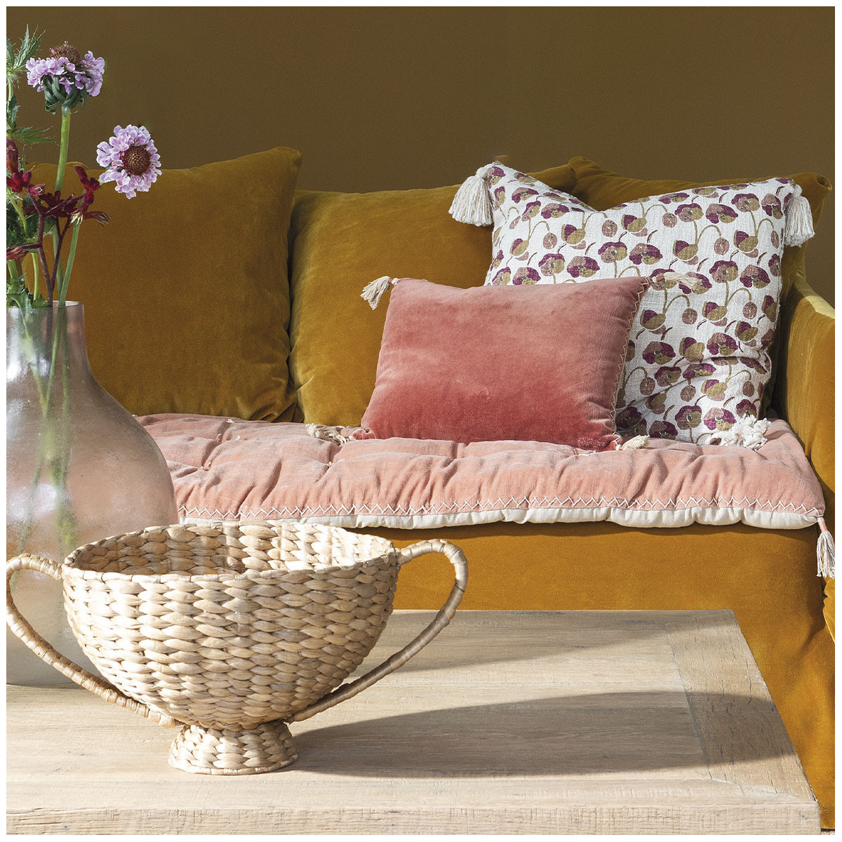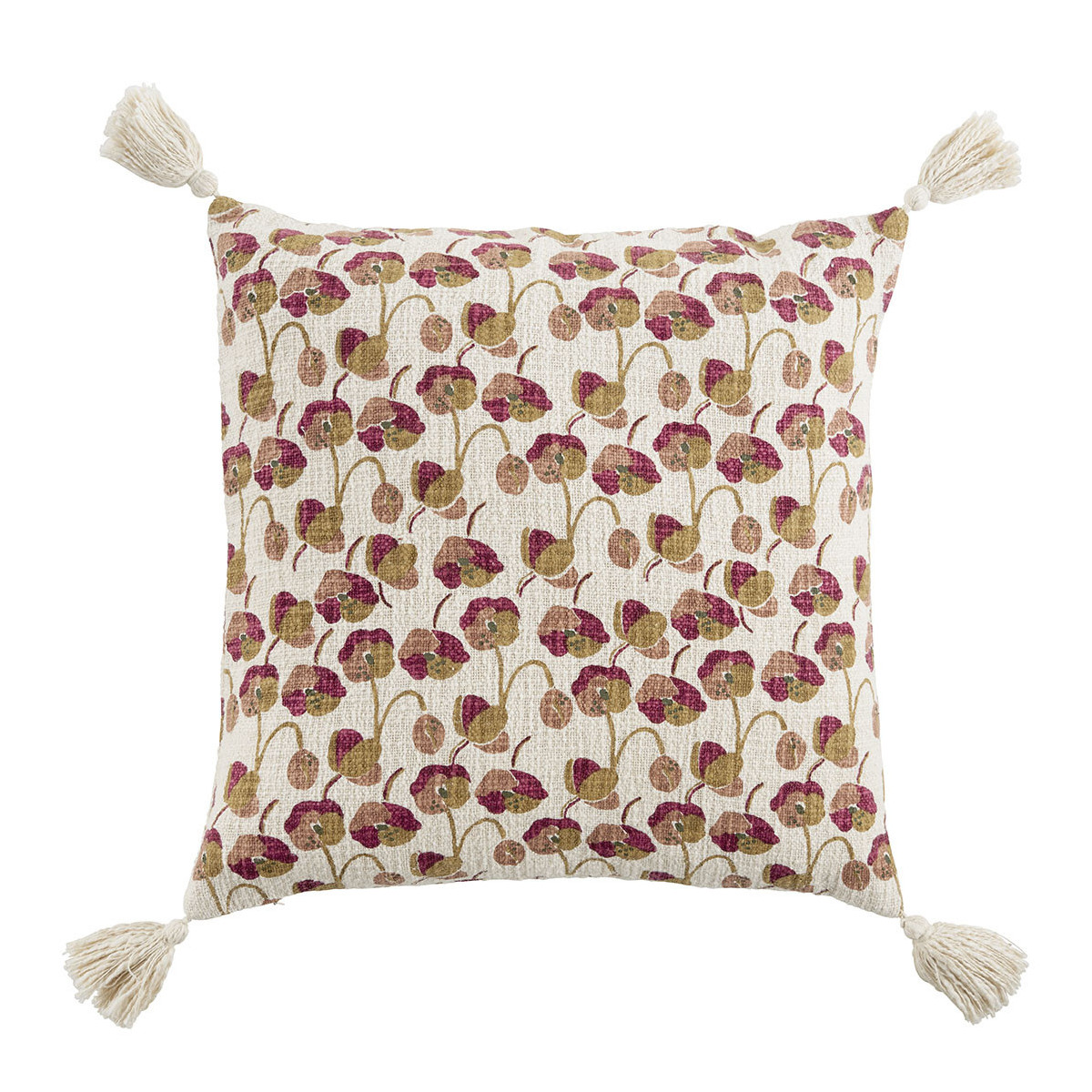 Fall for this COQUELICOT cushion cover with its irresistible floral pattern printed using traditional woodblock methods. Trimmed with elegant pompoms, it will bring poetry and softness to your interior.