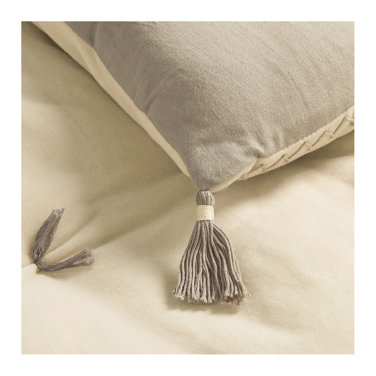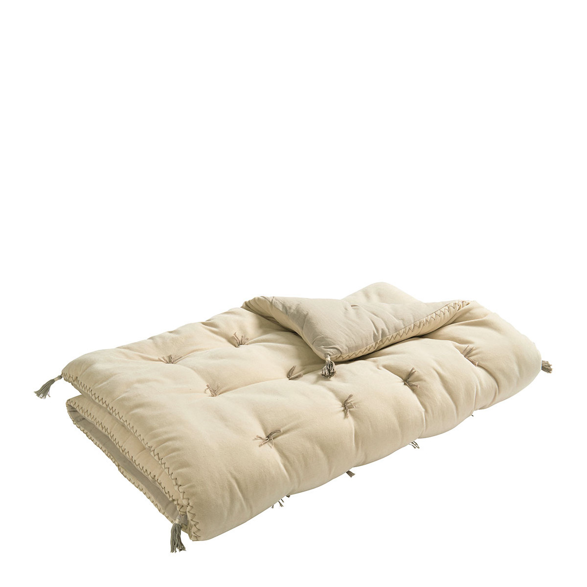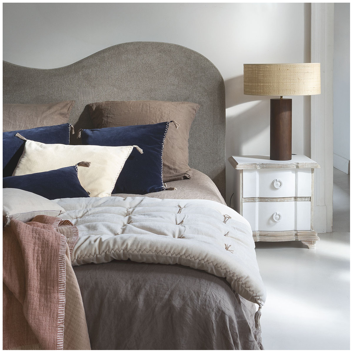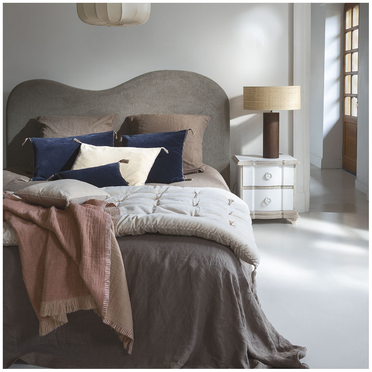Embrace the timeless style of the MATTÉO vanilla futon. On a bed or sofa, its soft and luminous shade will illuminate your interior with elegance. Its refined blend of velvet and linen gives it a natural charm, easy to pair with solid or printed cushions to create a warm and personalized atmosphere.