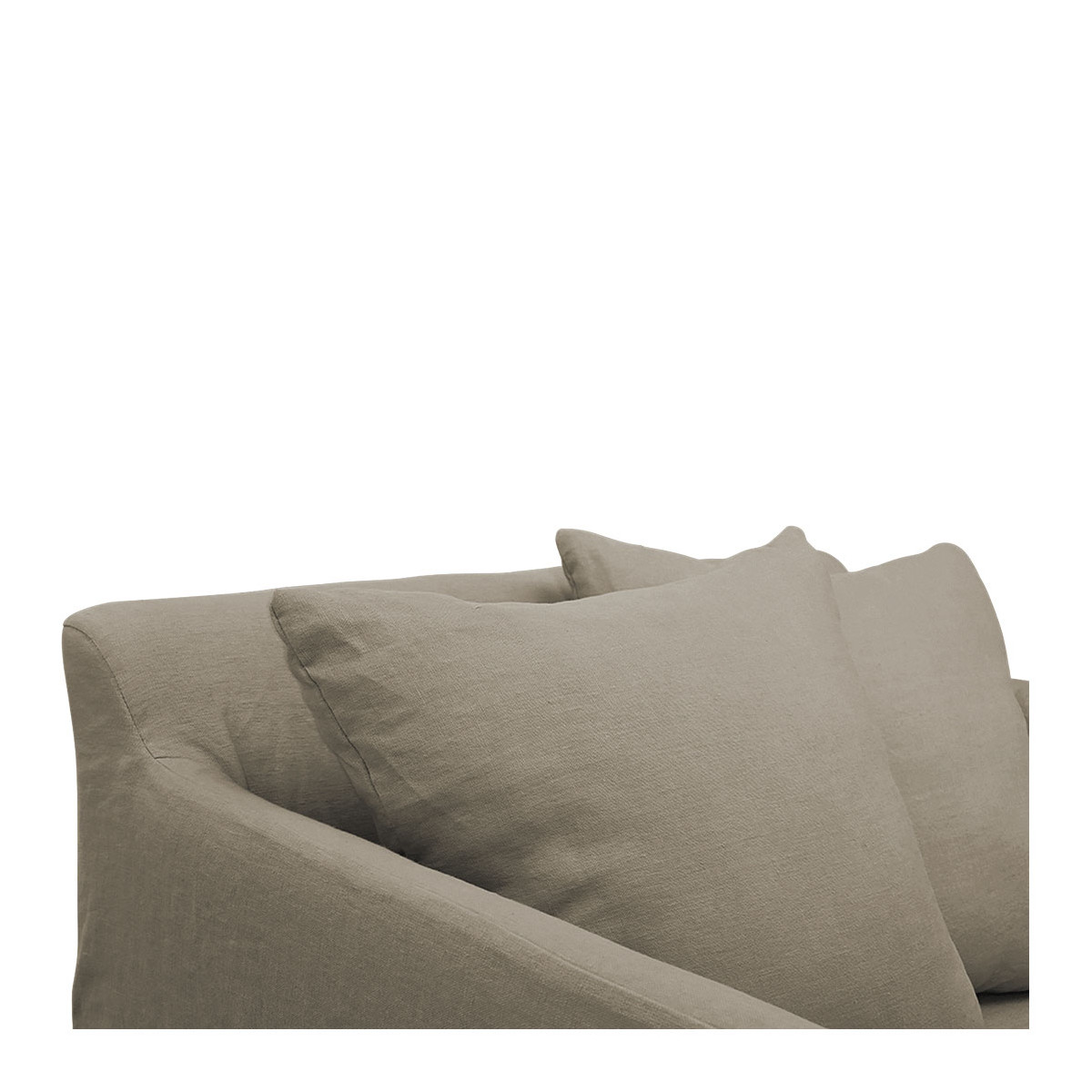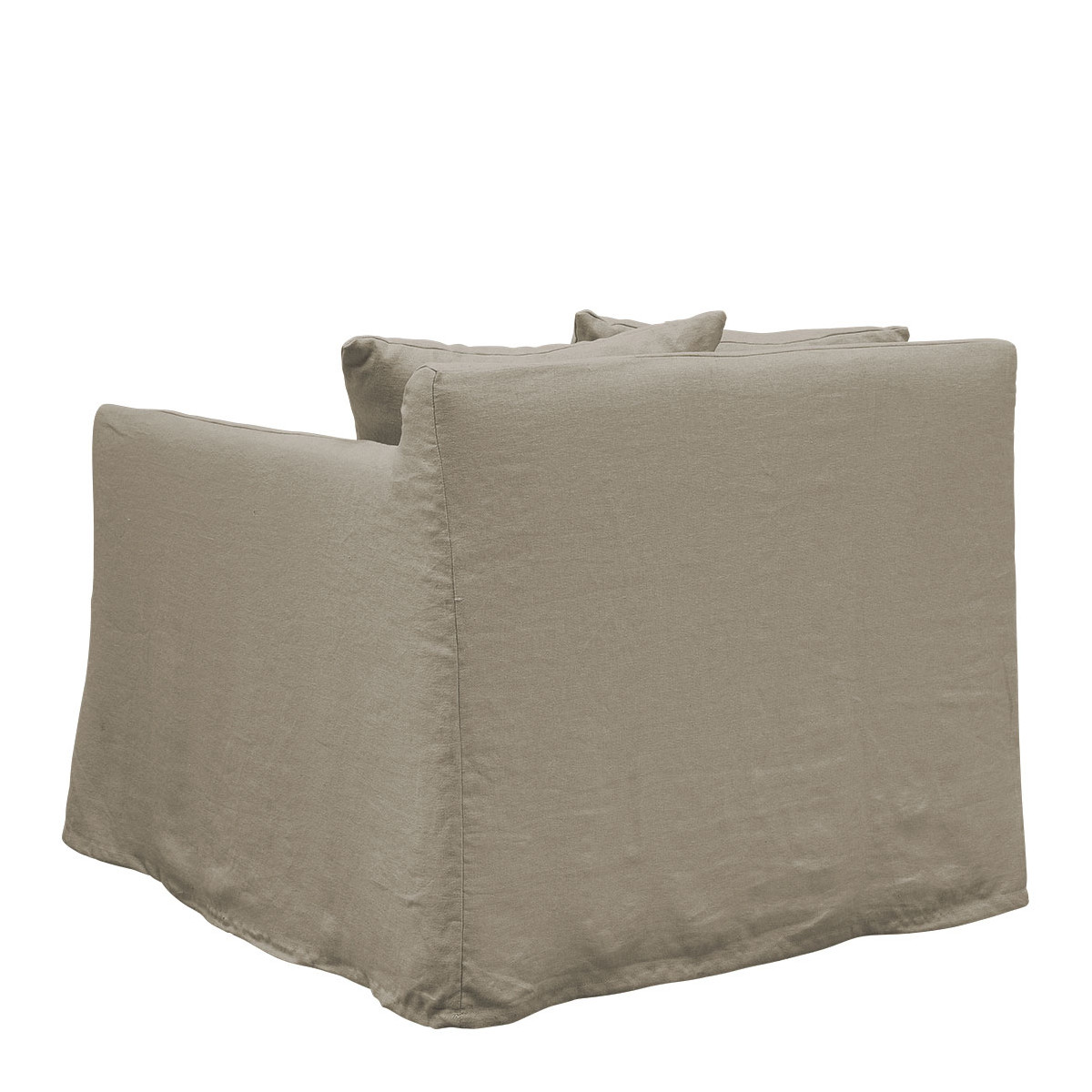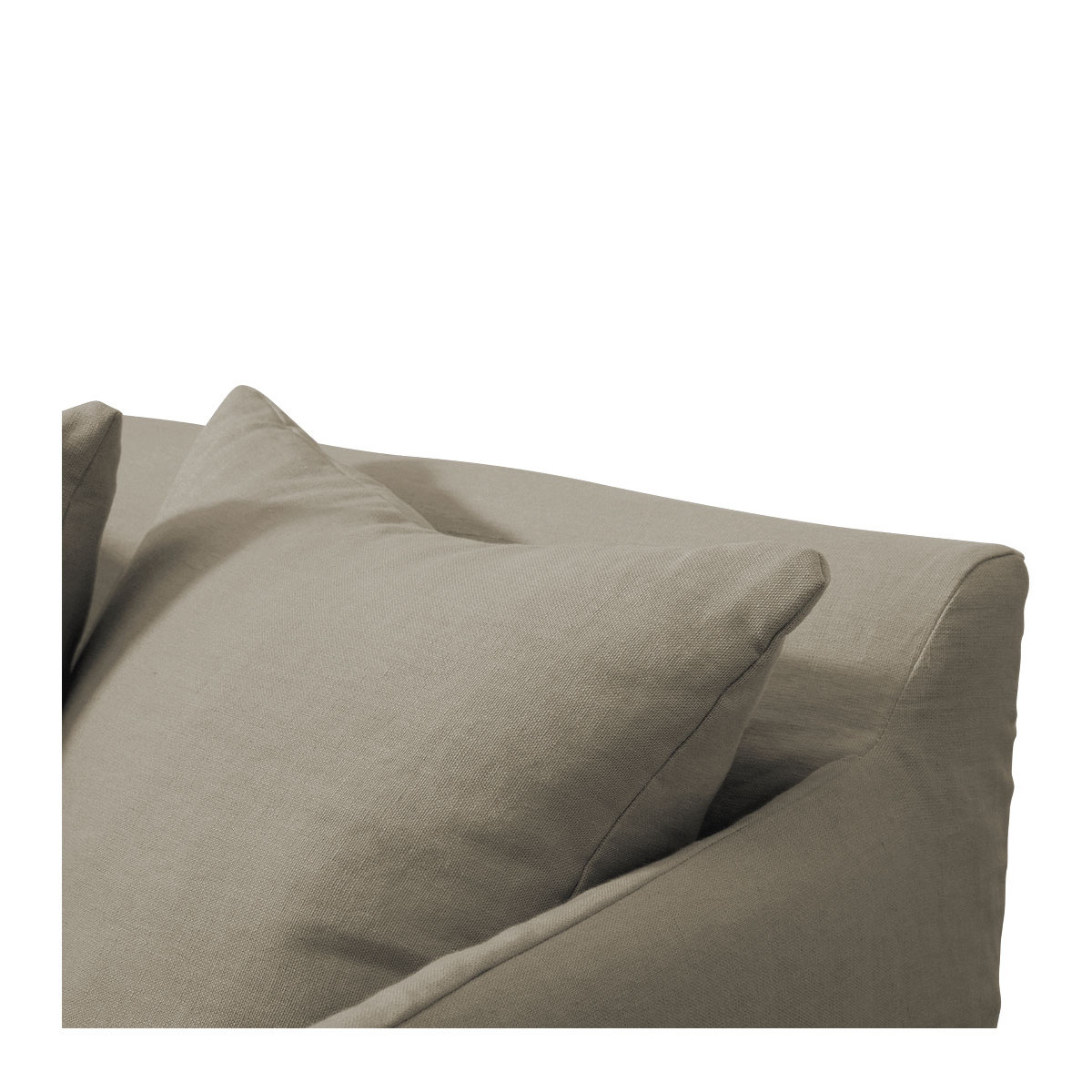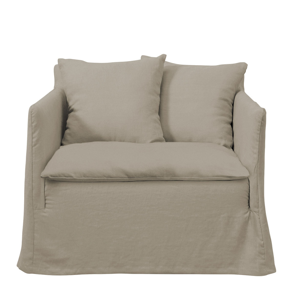 Dressed entirely in linen, the GABRIEL armchair with its fine and elegant lines will bring harmony and softness to your interior. Its soft upholstery, generous seat, 2 plush cushions and slim armrests make it one of the most comfortable seats you won't want to leave... Let yourself be seduced by its deep color, which will instantly create a cozy atmosphere in your living space. Its solid beech frame and legs ensure robustness and stability.