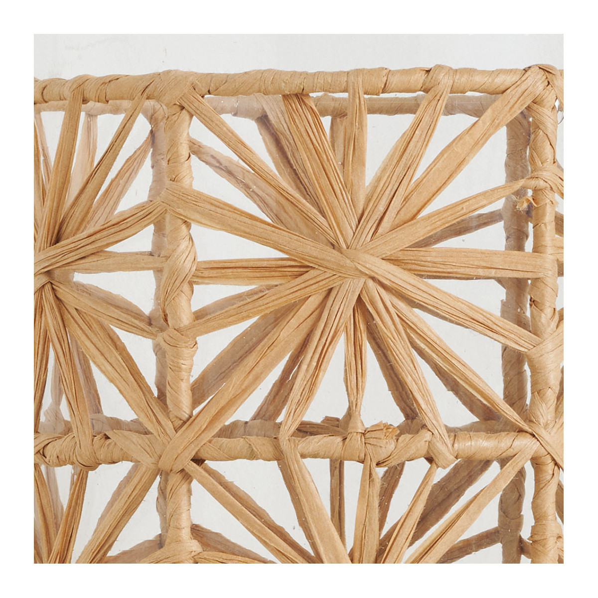 Fall in love with this delicate GARANCE demijohn vase in transparent glass, surrounded by braided raffia that forms elegant flower shapes around its contour. This elegant bottle-shaped piece will bring a countryside spirit to your interior decoration. It can also be repurposed as a water carafe for an authentic and natural touch during your meals.