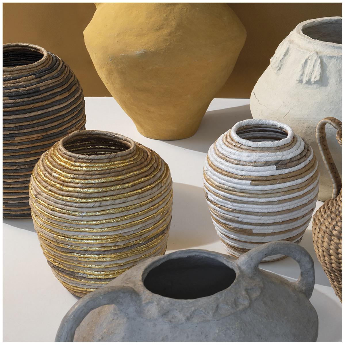 The GOA decorative jar was designed to give your living space an exotic charm and a handcrafted look. It will bring elegance to your decoration in complete simplicity thanks to its structure in abaca and raffia. Its unique blend of textures and colors will add a touch of authenticity to your decoration.