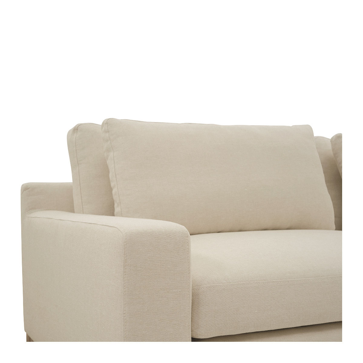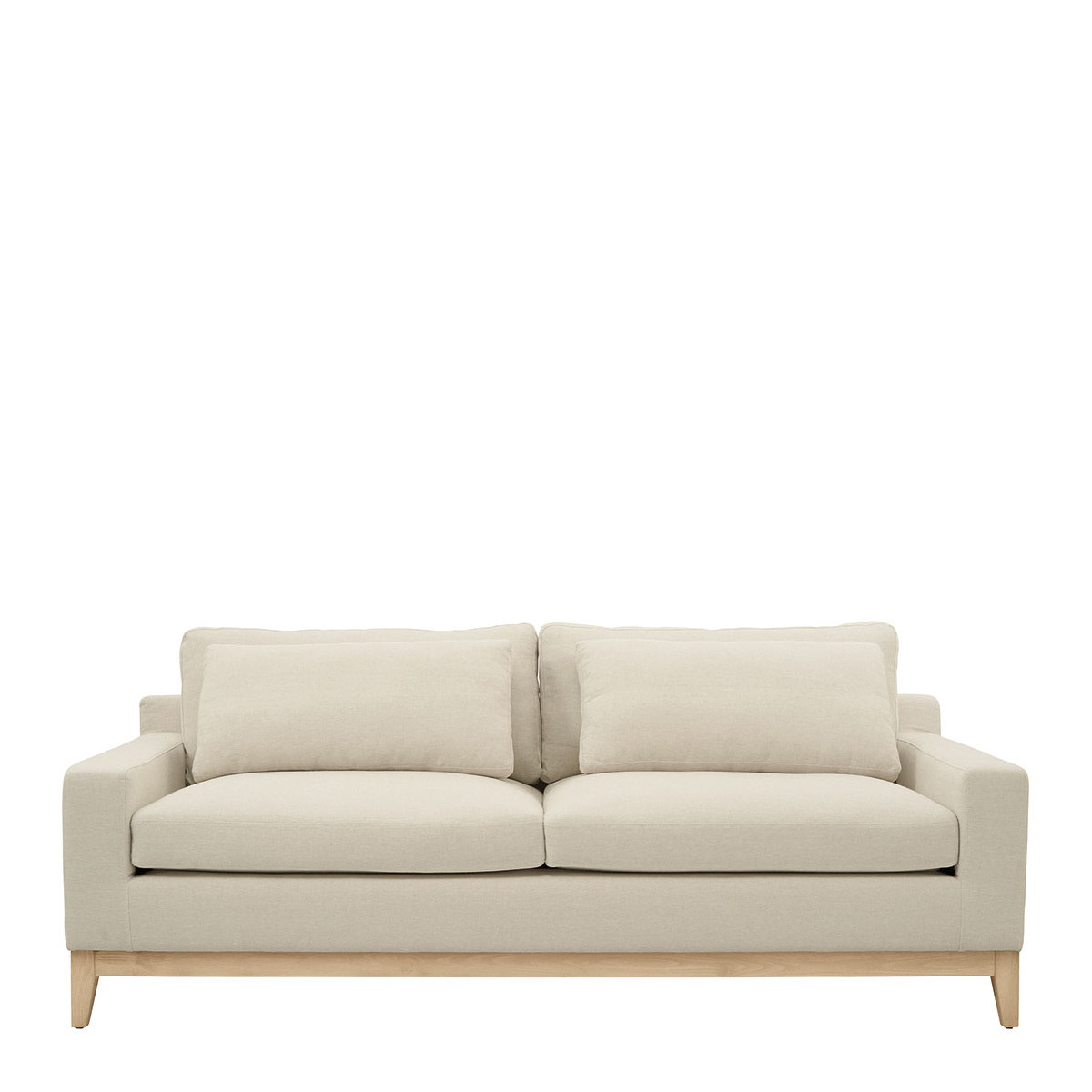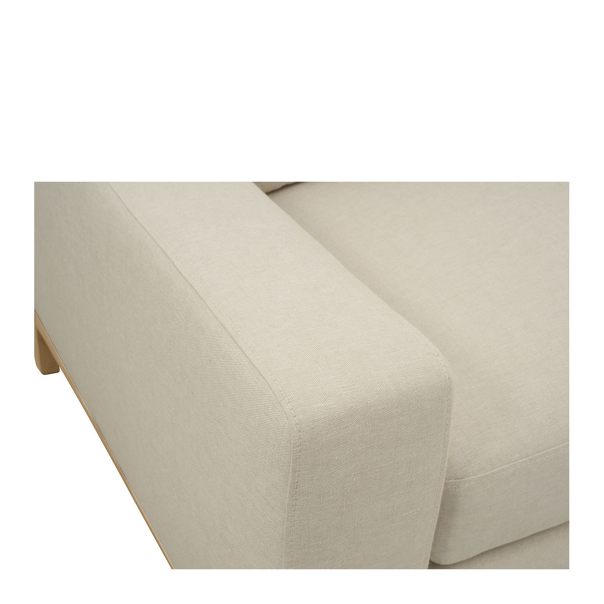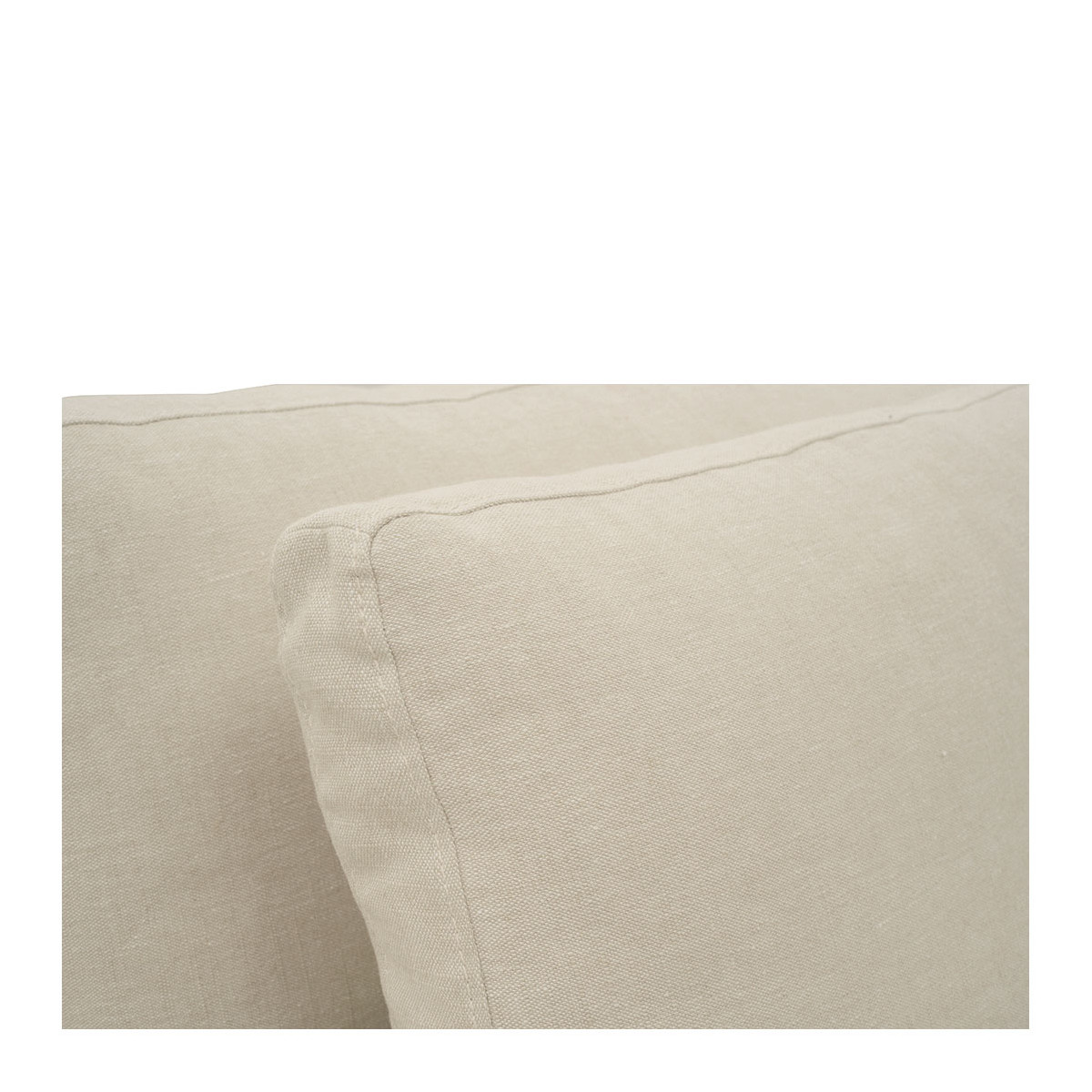 Comfort and elegance invite themselves into your living room with the LÉONORE sofa with timeless lines. Its soft ecru linen upholstery, generous seating, 2 plush cushions and large armrests make it one of the most comfortable seats you won't want to leave... Let yourself be seduced by its bright color, which will instantly create a soft and cozy atmosphere in your living space. Its structure and solid beech feet ensure robustness and stability. This centerpiece of the living room will quickly become the stage for unforgettable moments, with family or friends.