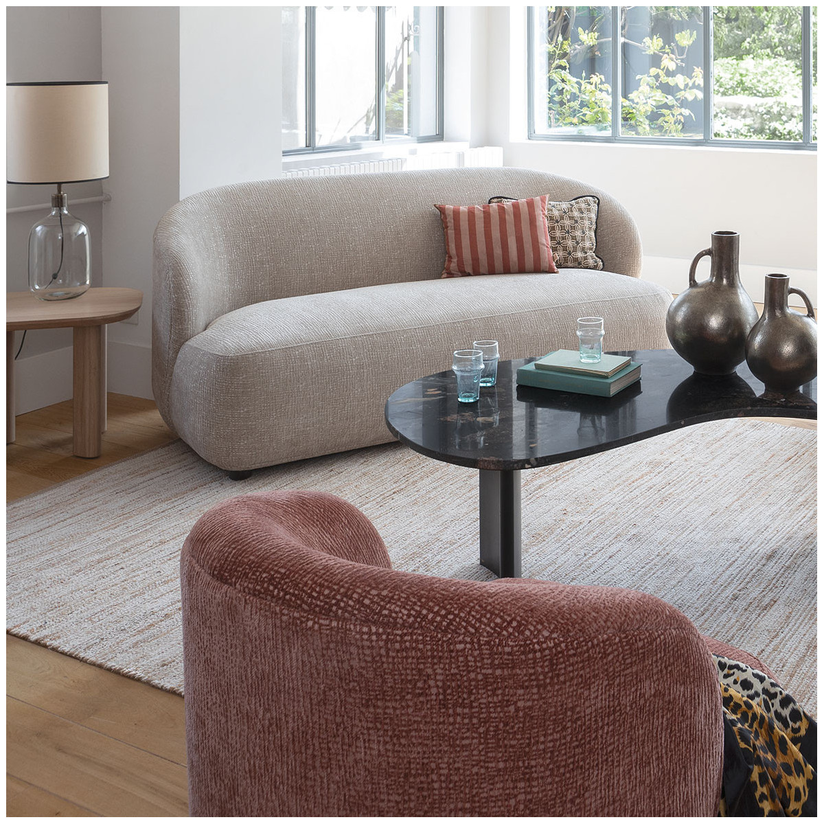 Our LISETTE line naturally integrates into all interior styles. For the living area, you can easily pair the sofa with other products from the LISETTE line, such as the armchair and ottoman. Be tempted by mix & match by combining jacquard velvet with pieces in natural materials such as a generous-sized coffee table in light oak, a jute rug or an elegant raffia pendant light, for an ambiance that is as cozy as it is refined.