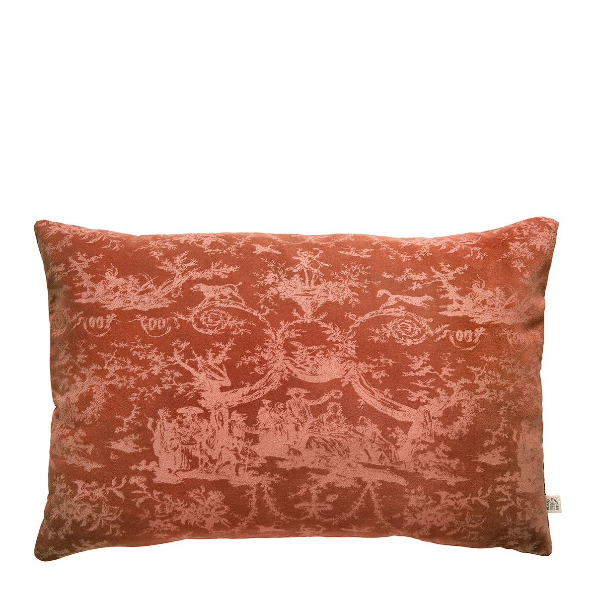 The Toile de Jouy pattern of the LOUIS cushion reveals all its elegance in a burnt orange shade, warm and vibrant, that brings character to the decoration....