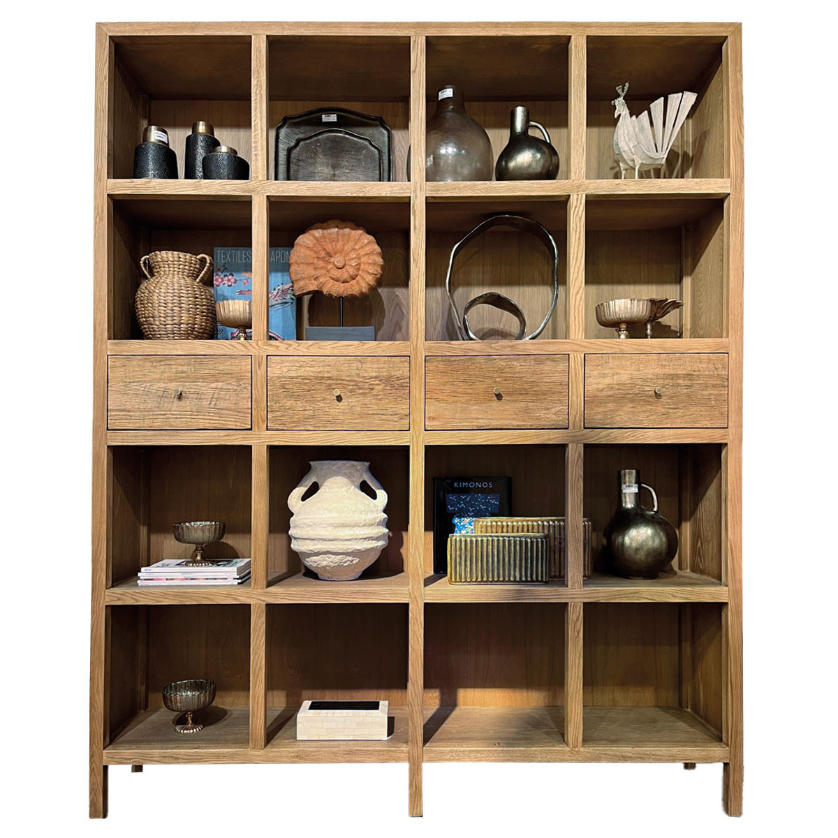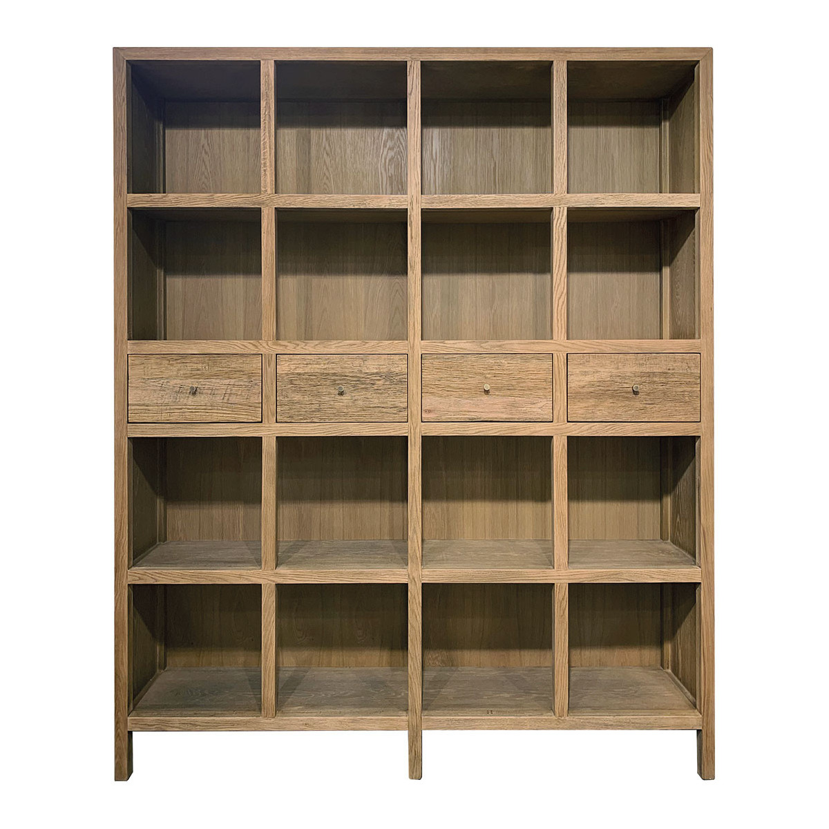 Inspired by the raw charm of country workbenches, the MARCELLE bookcase will captivate you with its warm recycled light oak. Authentic, its natural wood grain and sturdy assembly make it a timeless piece that will enhance all decor styles. It will become the centerpiece of your office or dining room.