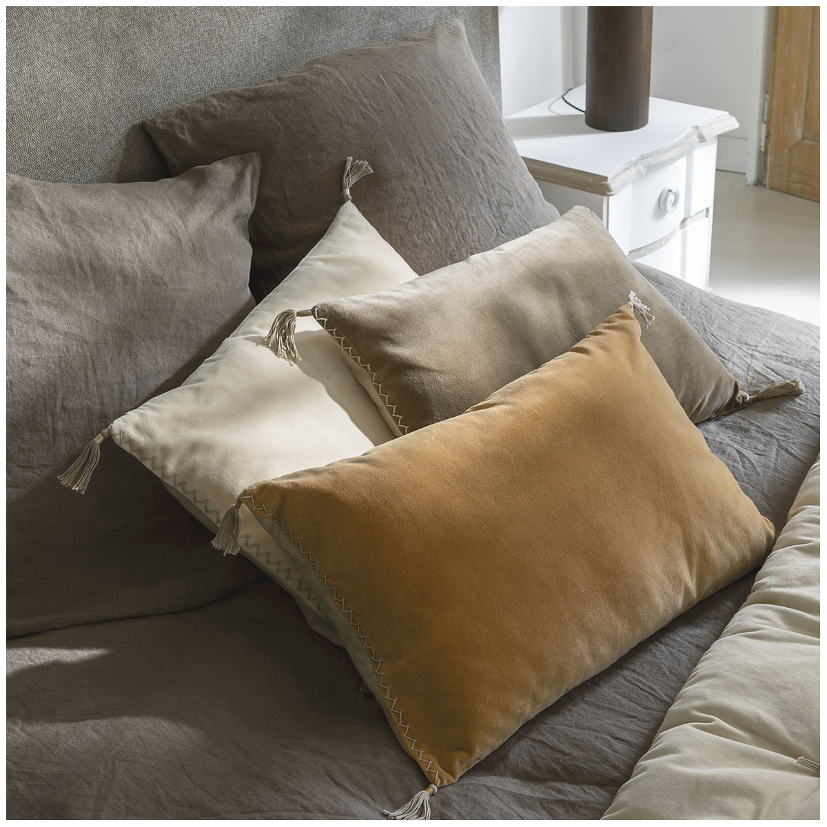 Let yourself be seduced by the softness of the vanilla MATTÉO cushion cover. Elegant and timeless, this square cover offers classic proportions ideal for dressing a sofa or bed. The combination of soft velvet and natural linen reveals itself in a luminous vanilla shade, easy to pair with other colors.