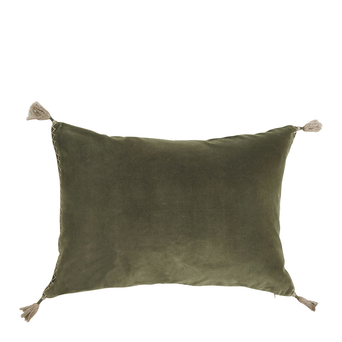 MATTÉO Cushion Cover in Cotton Velvet and Linen - Khaki - 60 x 40 cm