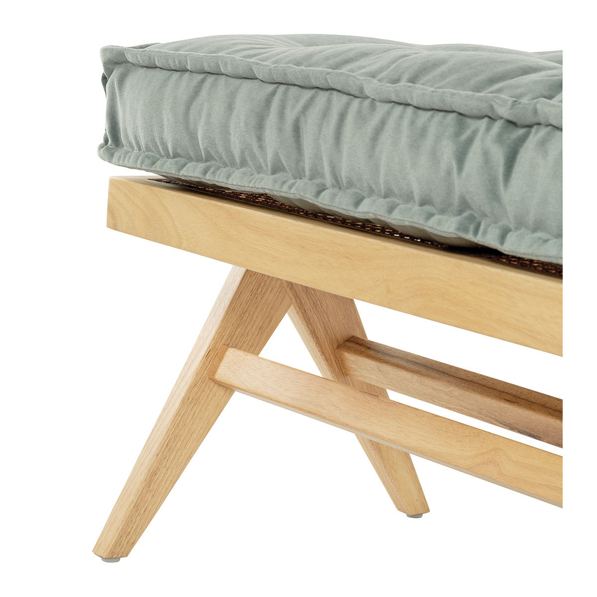 This vintage-inspired bench has been revisited with style and modernity. Its elegant tufted mattress and light wood hevea finish will bring a touch of softness to your interior.