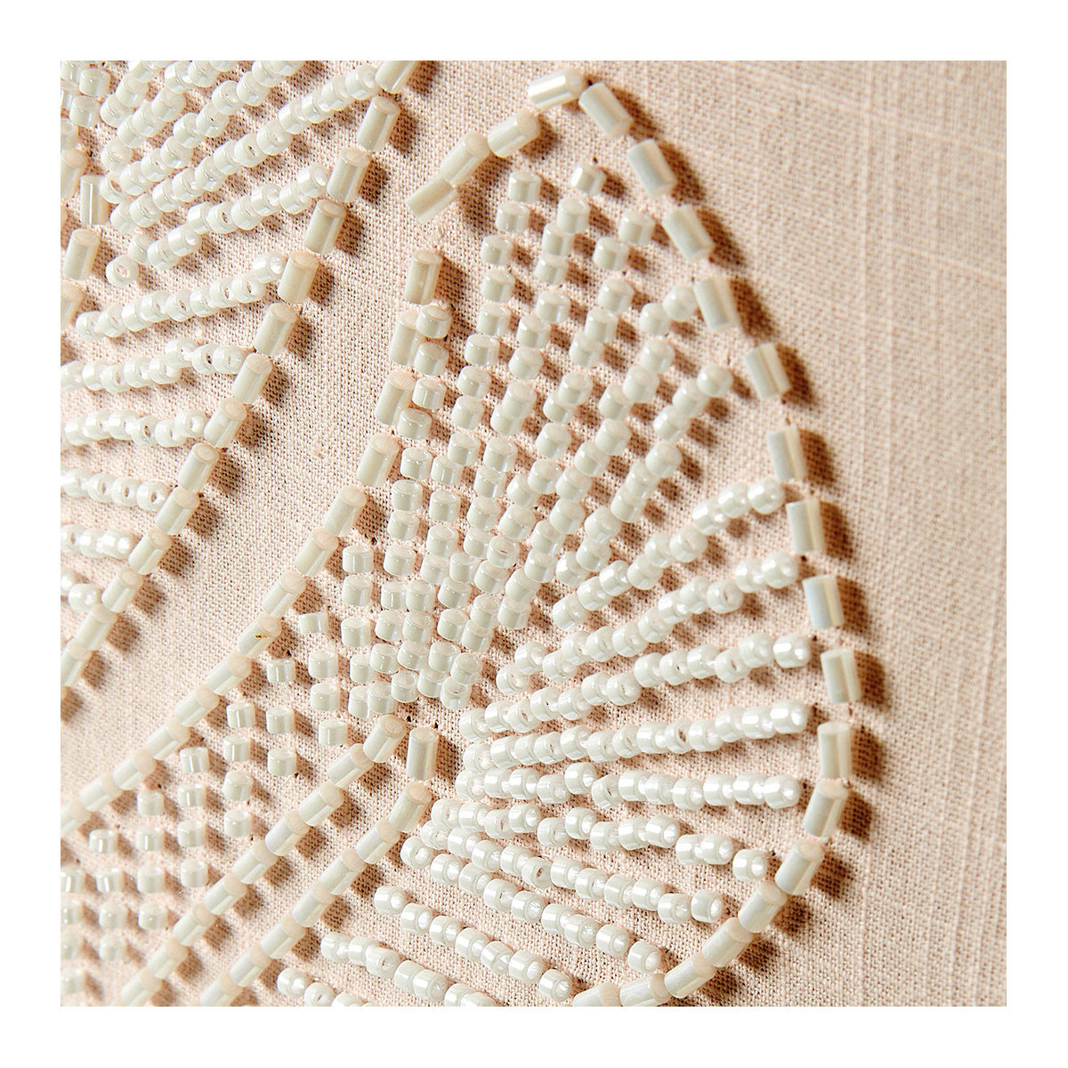 Transform your walls into true works of art with this palm-shaped wall decoration adorned with ecru beads. Every detail of this piece evokes a perfect balance between simplicity and sophistication. The delicately arranged beads enhance the natural texture of the palm, adding a bohemian and chic sparkle to any space.