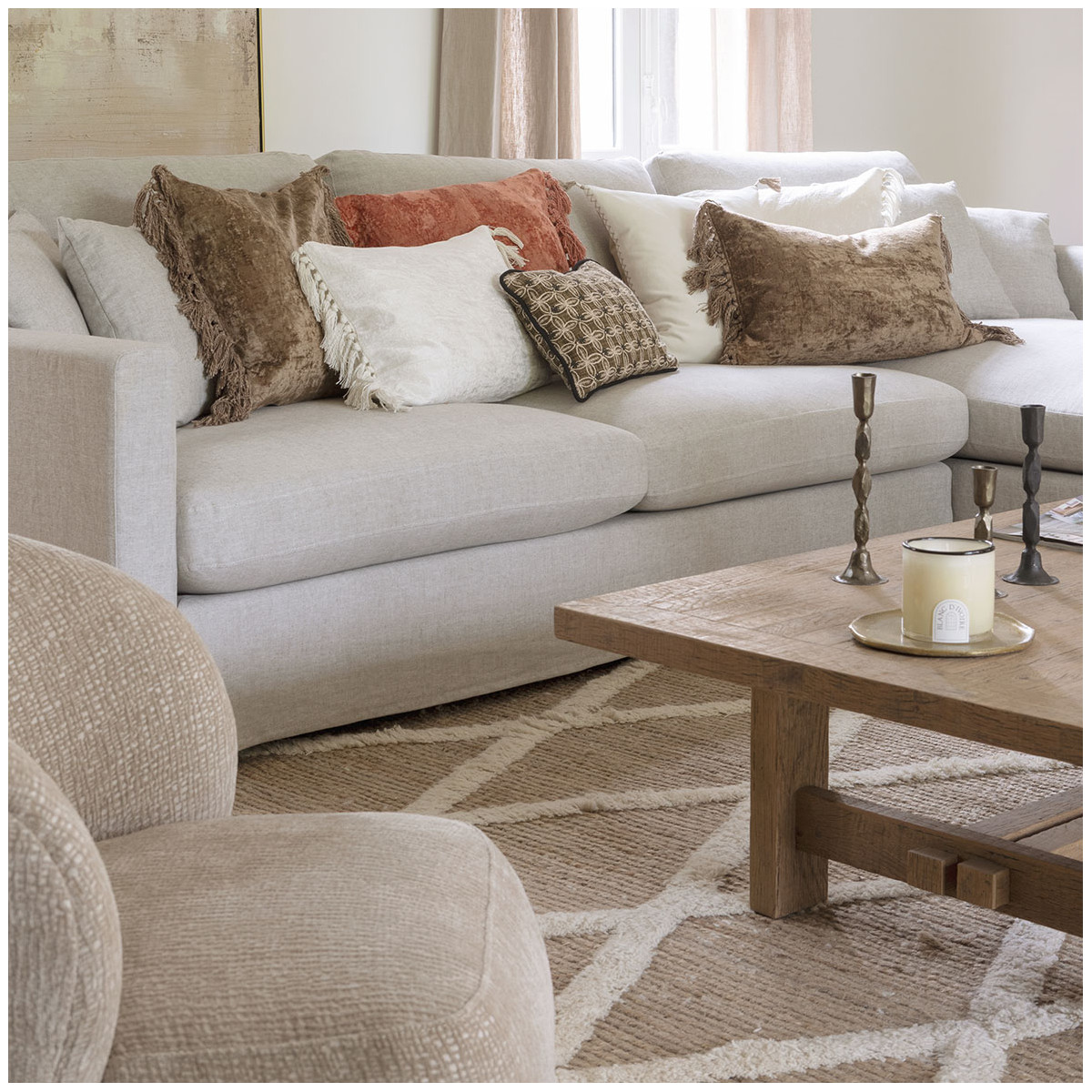 With its fringed finish and plush appearance, the PAULA iridescent taupe cushion cover adds a touch of refinement to your interior. Its velvety texture and iridescent reflections give it incomparable softness and luminosity. You can play with contrast and originality by pairing it with other solid colors or prints.