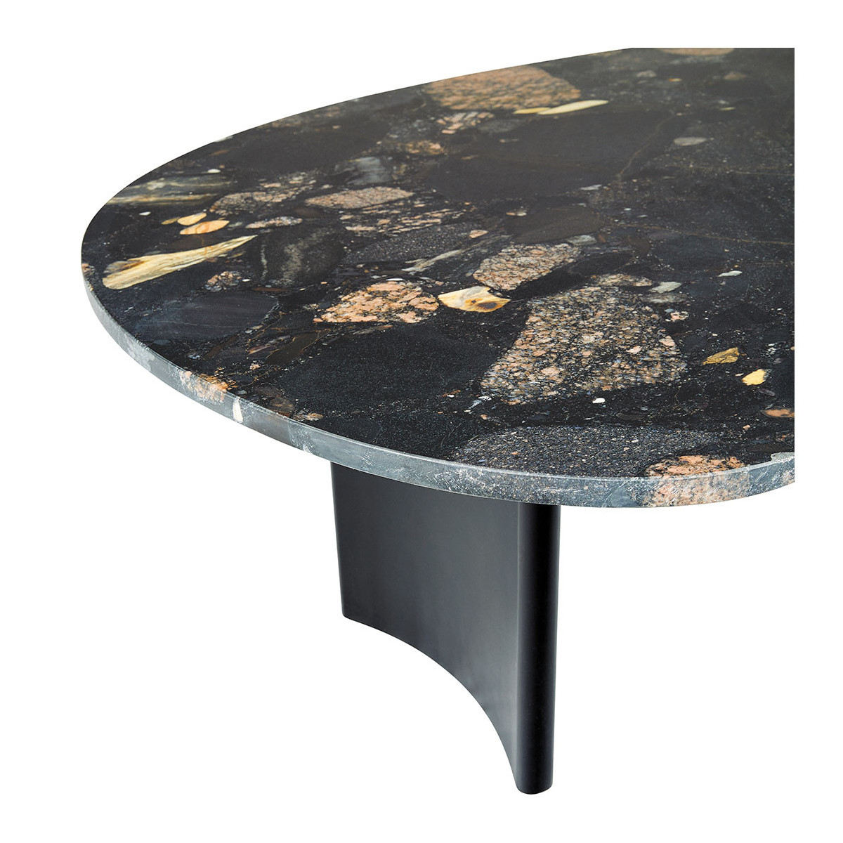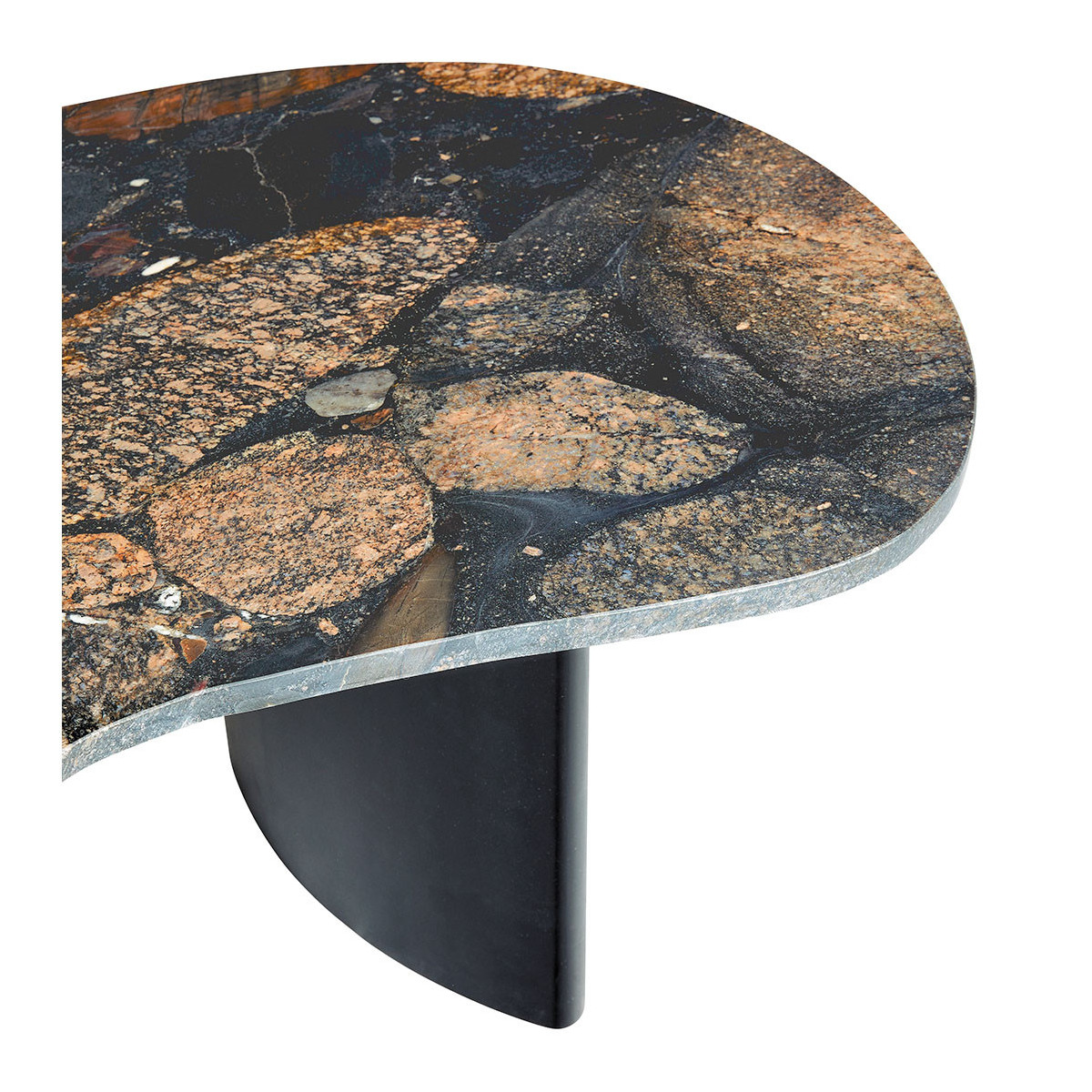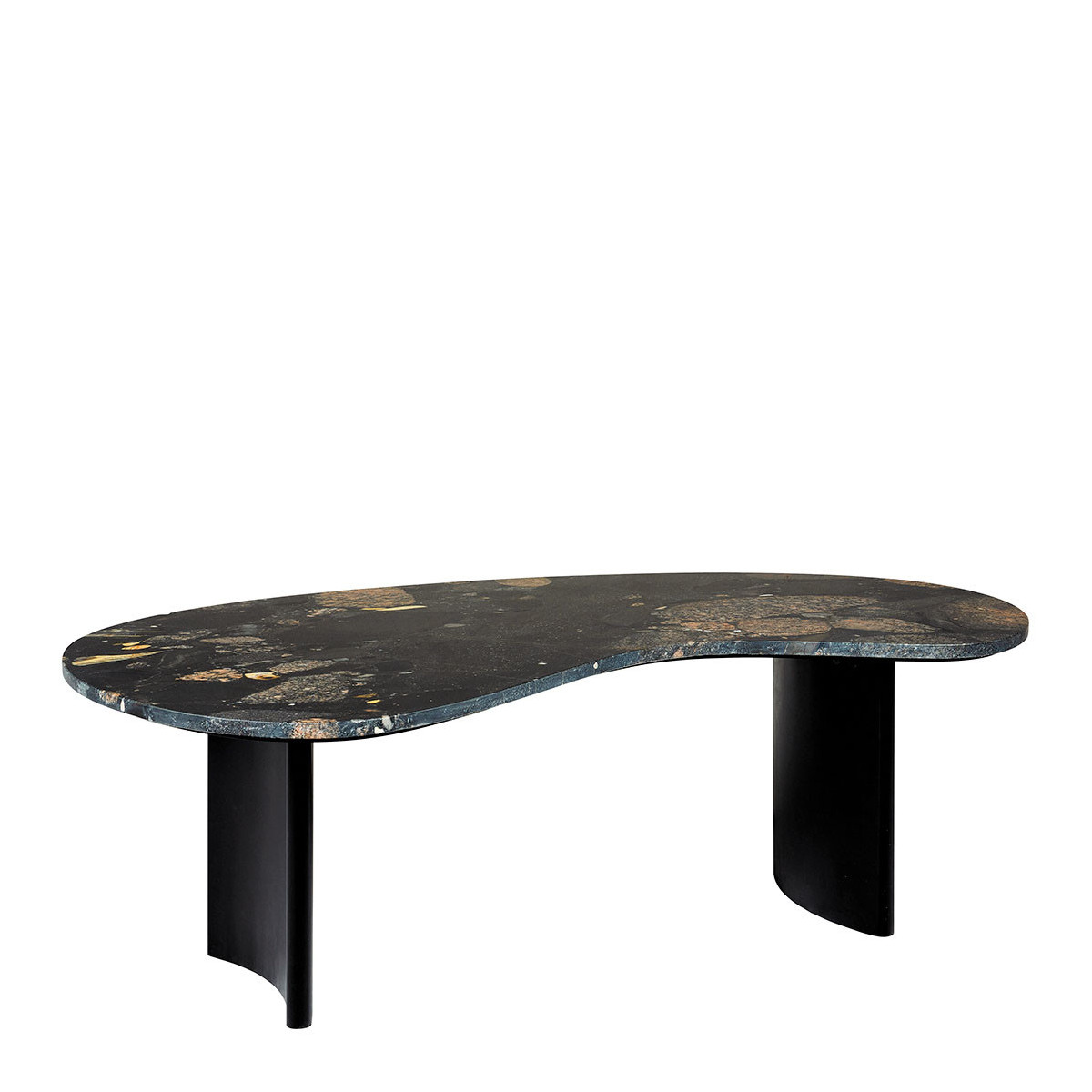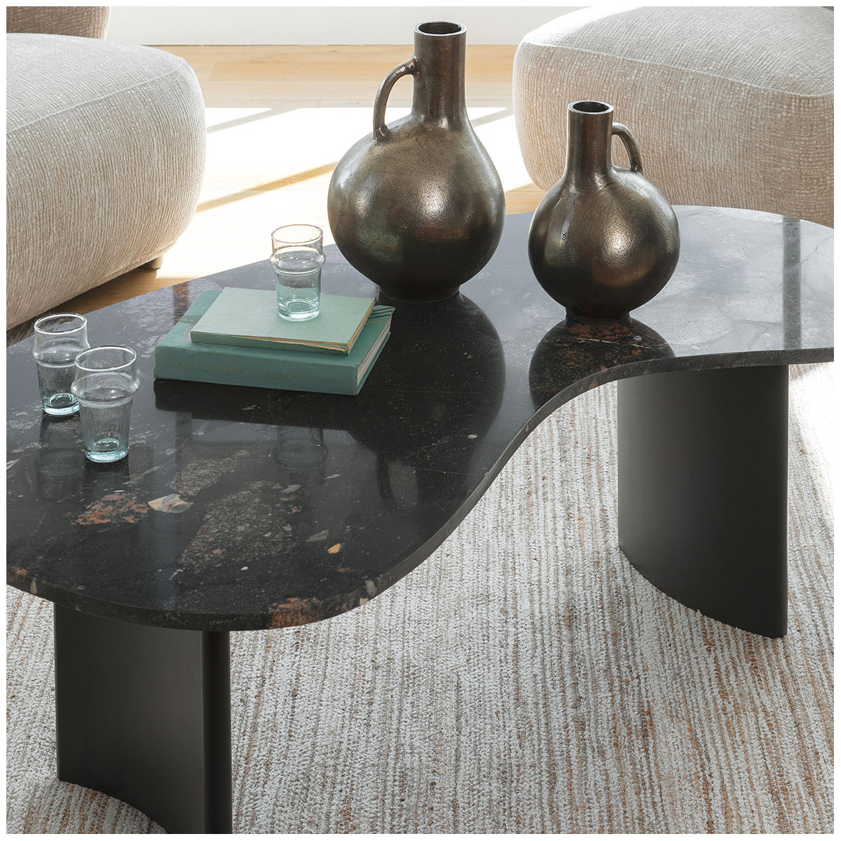 With its organic silhouette and graceful appearance, the PIA coffee table charms at first sight. Its black marble top, crossed with subtle veining, diffuses a mineral purity that enriches your space with natural elegance. Carved from authentic stone, the top reveals unique variations, making each table a singular work, imbued with character and timeless beauty.