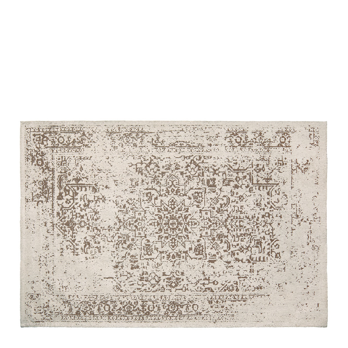 The DAVIO rug reveals beautiful khaki and white hues as well as inspiring motifs that invite you on a gentle journey along the route of the Indies....