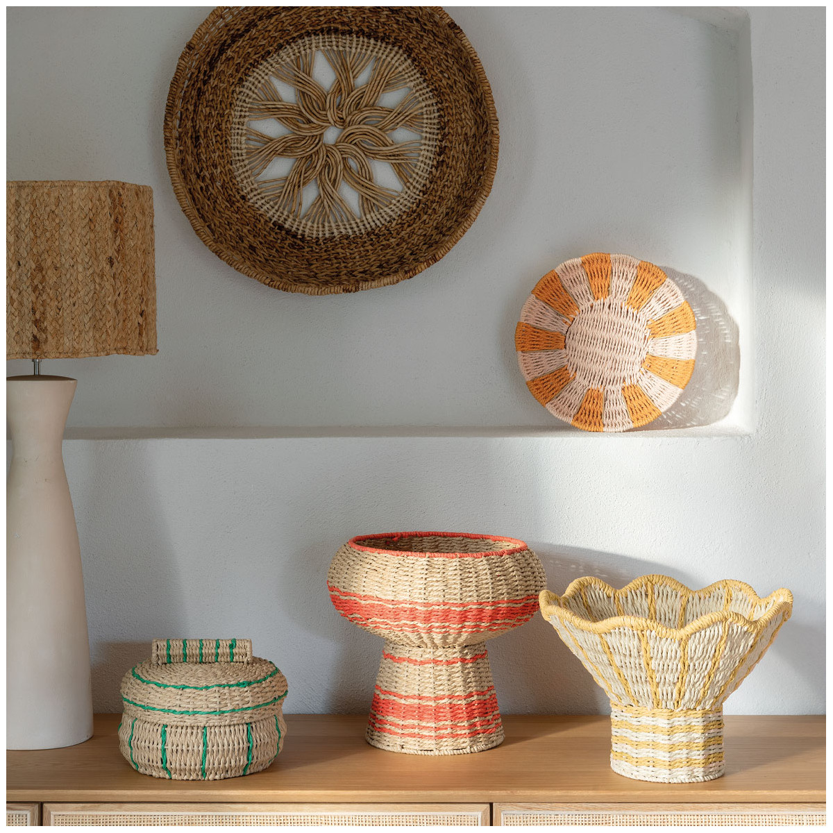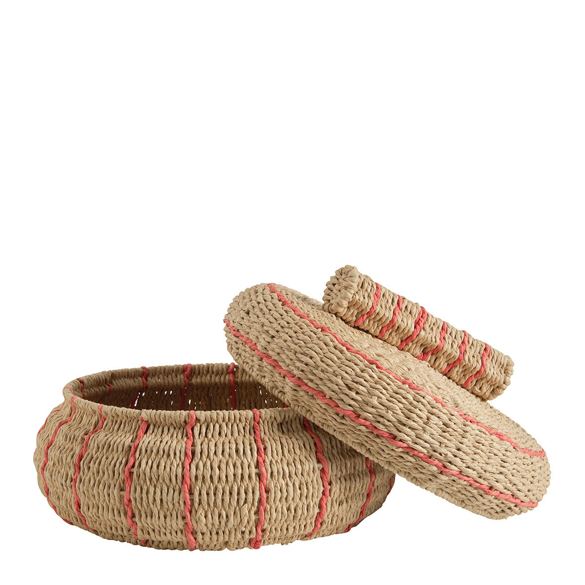 Combining craftsmanship and contemporary design, the HOKA boxes in woven paper cord offer a storage solution that is both practical and aesthetic. Their natural, coral, and green color combination brings a vibrant and warm touch to interior decoration. They are perfect for stylishly organizing small items, jewelry, or everyday accessories.