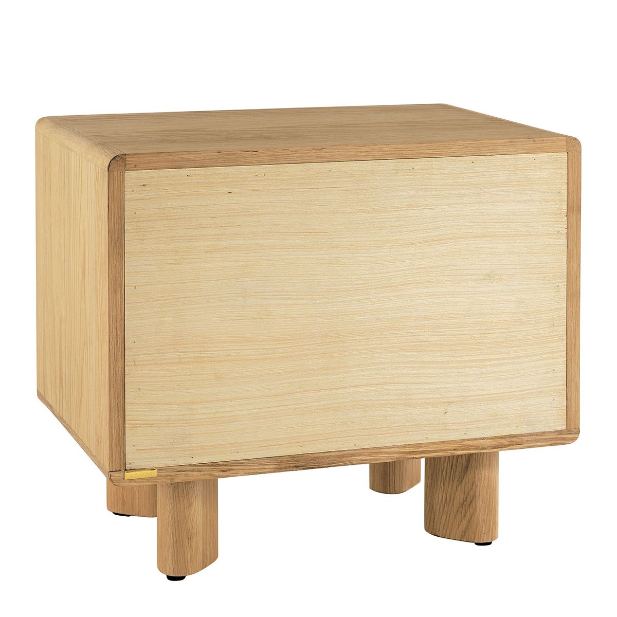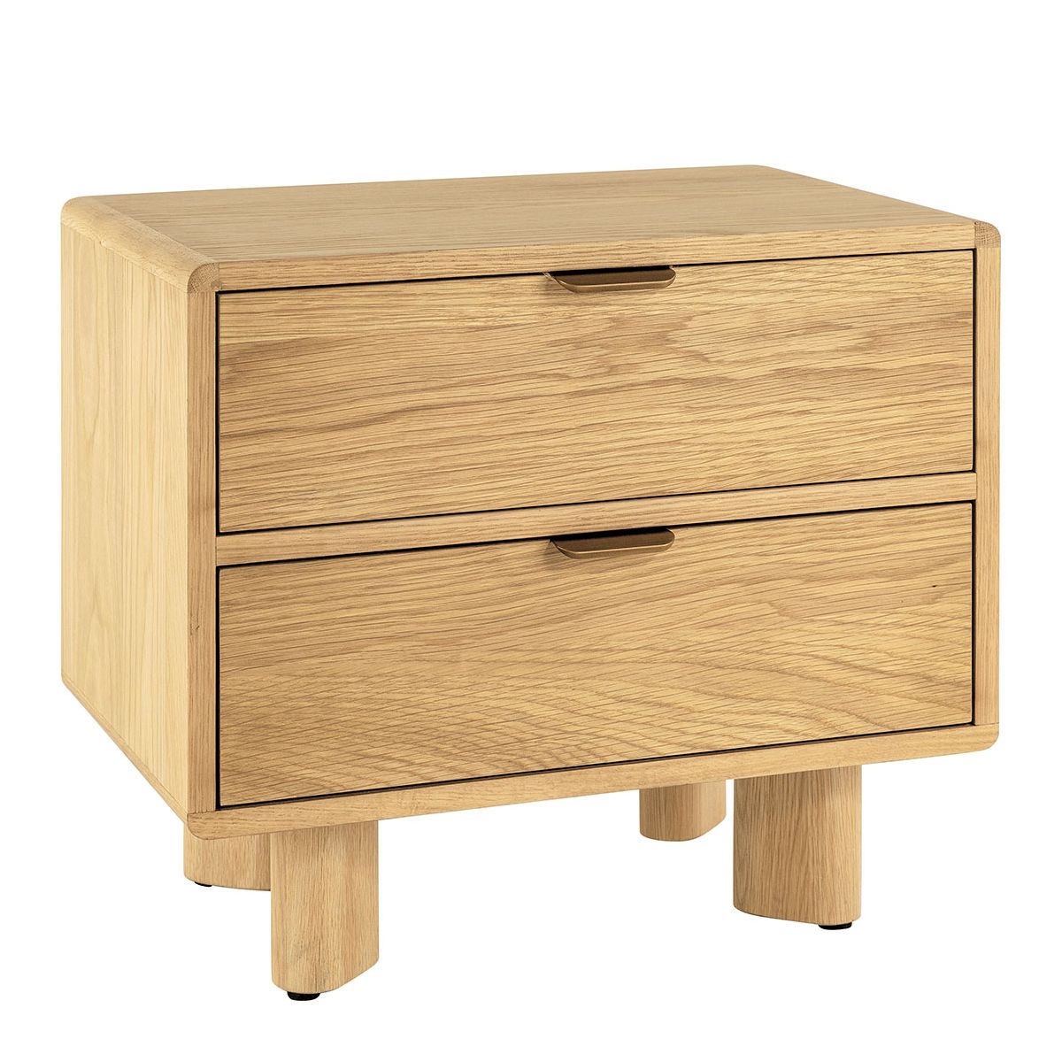 The SIMONA nightstand in light oak will really please you! It borrows from Italian design the purity and balance of lines. Remarkable for the sobriety of its all-rounded structure, its elegant base and the lightness of its wood, this piece of furniture will match all styles of ambiances. Practical, it has two drawers to slip in your belongings in the evening.