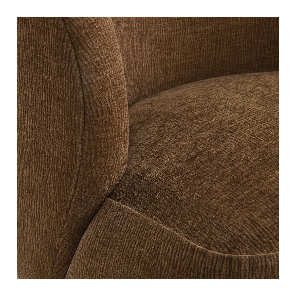 The LISETTE armchair has many surprises in store for you. Its irresistible rounded shapes conceal a swivel base that allows you to orient it easily with a simple gesture. Upholstered in an elegant tobacco marbled velvet fabric, it captivates with its warm and refined character. Its deep and nuanced shade harmonizes elegantly with contemporary interiors as well as more classic décors.