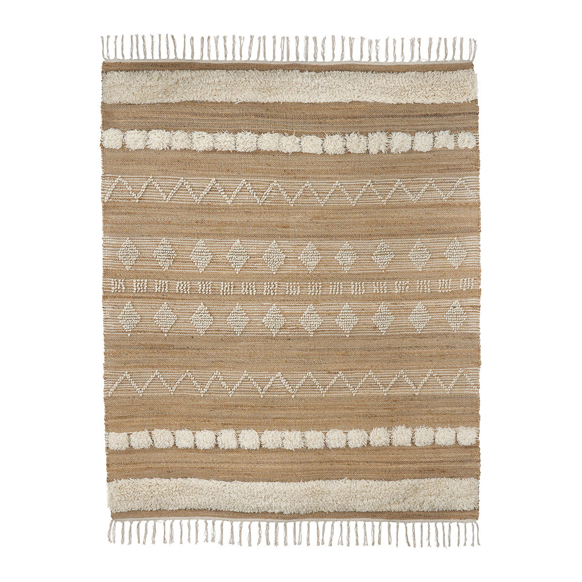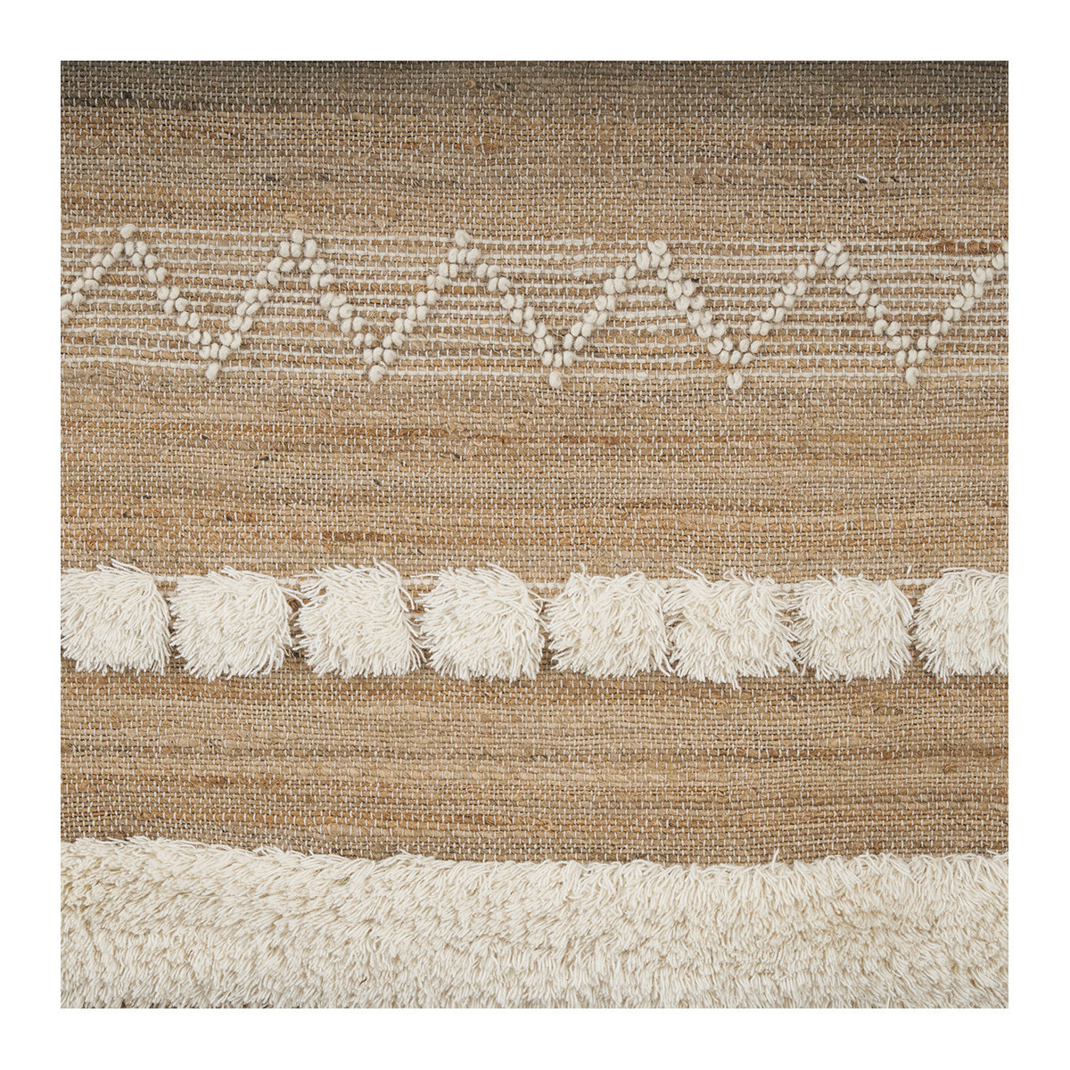 The TANGER rug invites you on a journey and poetically combines natural jute weaving with soft wool patterns.