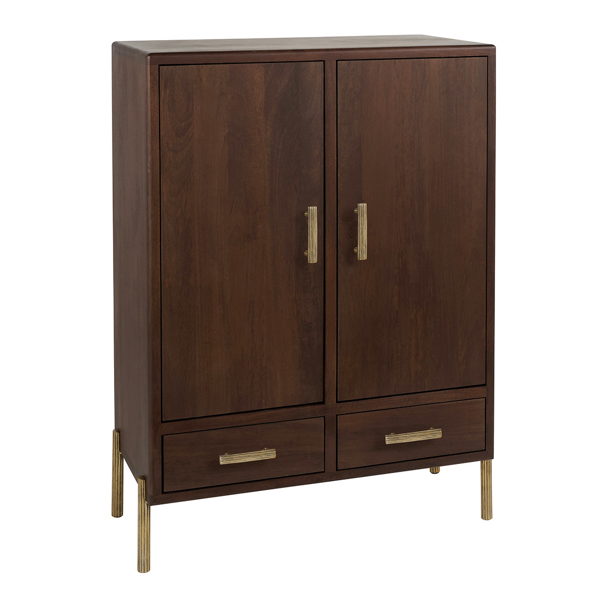 VICTOR tall sideboard in waxed mango wood with walnut finish