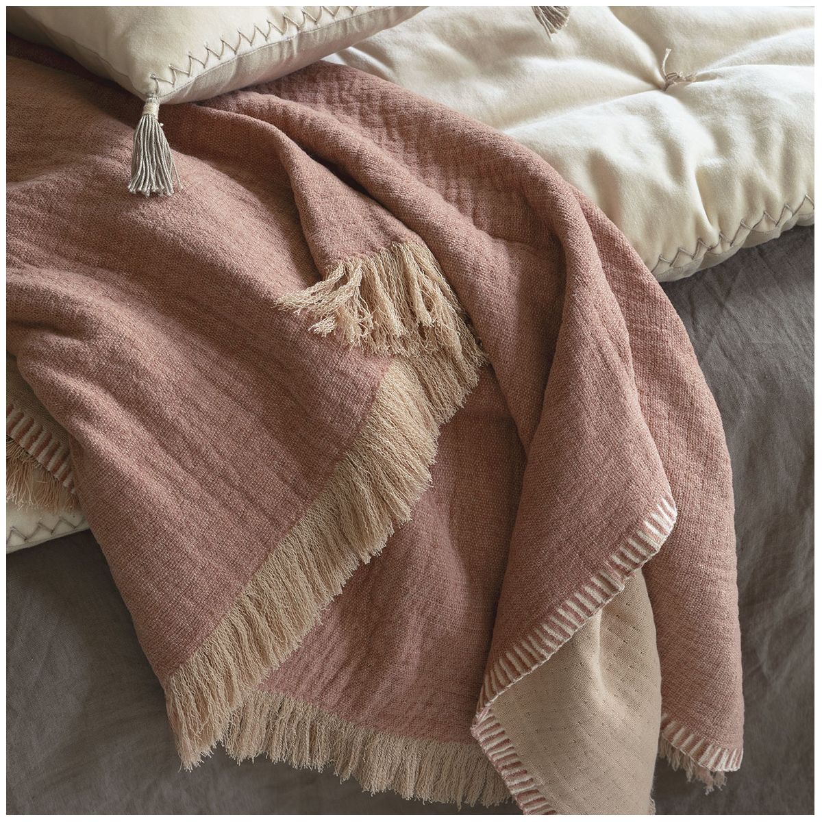 Plaid SIMÉON en coton et fibres de bambou - 130 x 170 cm - Rose